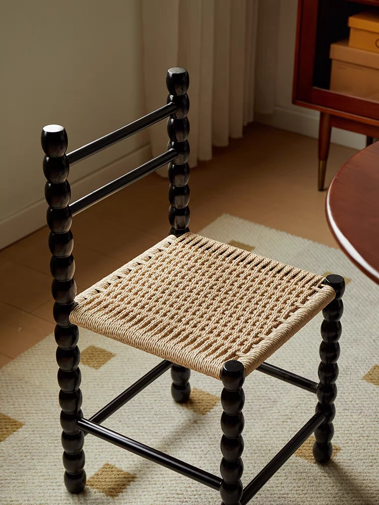 ヴィンテージ風の無垢材とラタン編みの椅子、リビングや寝室にぴったりな創造的なドレッシングスツール。フランス風の軽やかなラグジュアリー感を持ち、ゴージャスなひょうたん型のダイニングテーブル用背もたれ椅子です。