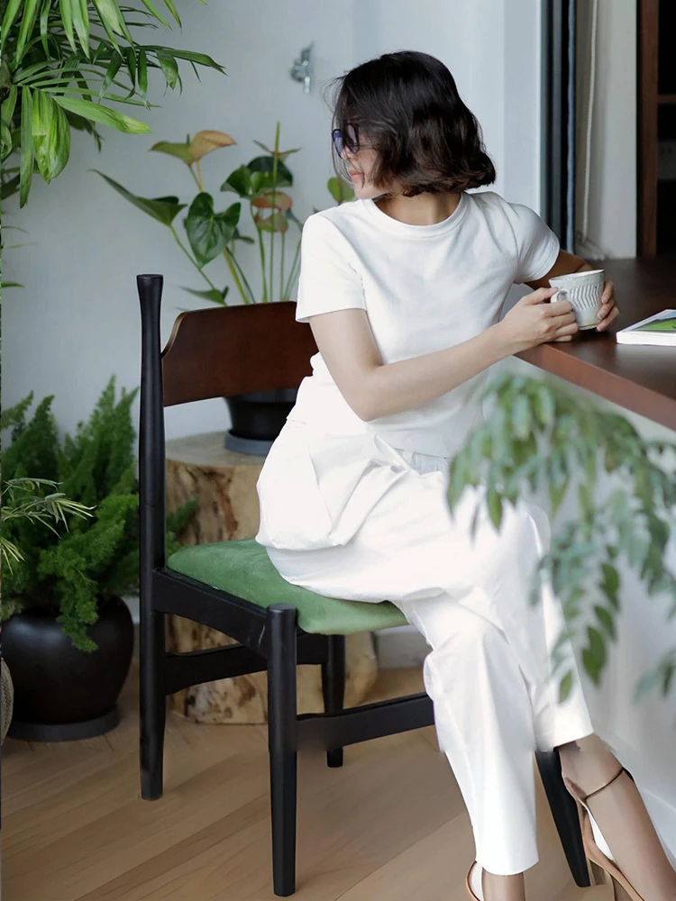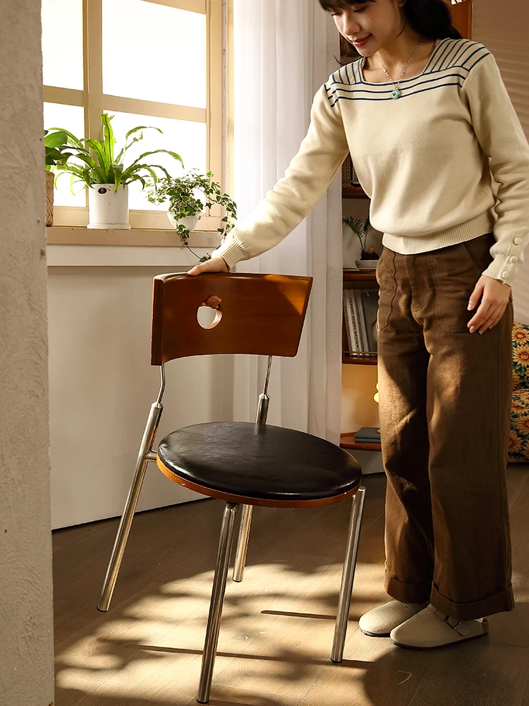 中華風のヴィンテージスタイル、無垢材とステンレス製のソフトパッキング・ダイニングチェア!小型住居にも最適なリビングや寝室用のリラックスチェア。スタイリッシュなデザインで、居心地の良い時間を提供します。