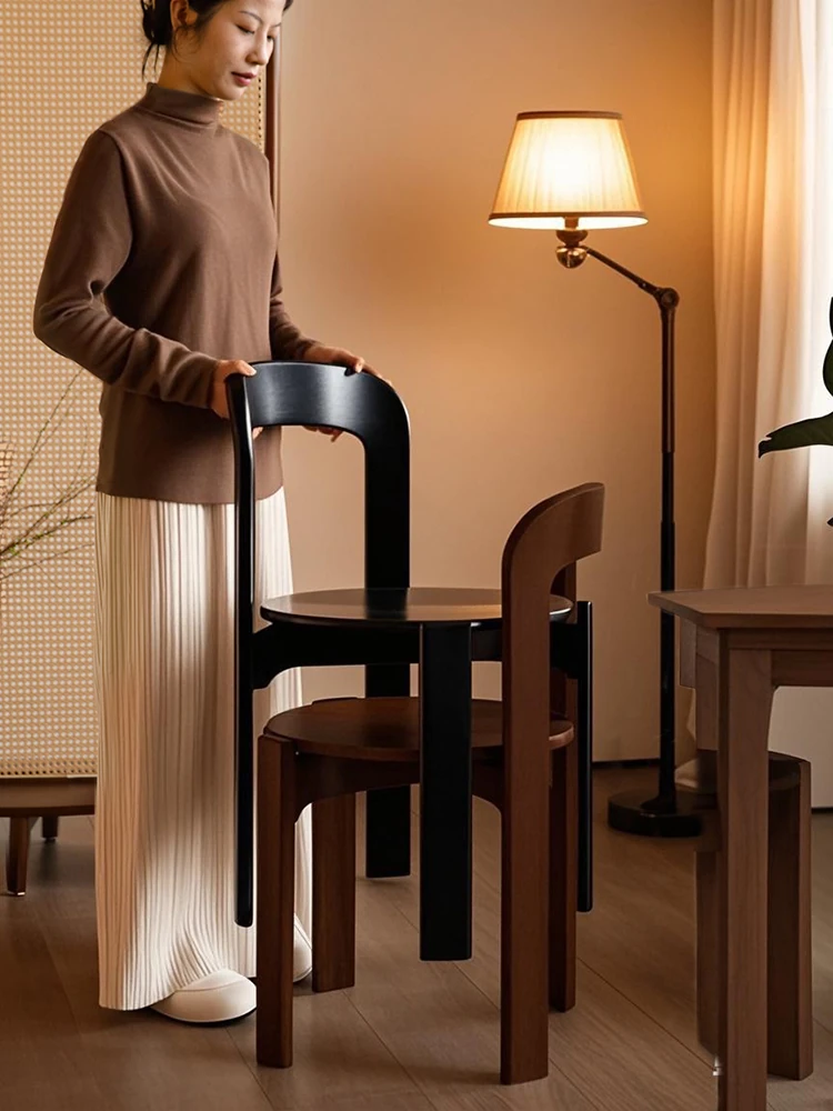 レトロスタイルの無垢材ダイニングチェア - 背もたれ付き、書斎やドレッサーにも最適!バウハウスデザインでおしゃれな家庭用、重ねて収納可能。快適さとスタイルを兼ね備えた一品です。