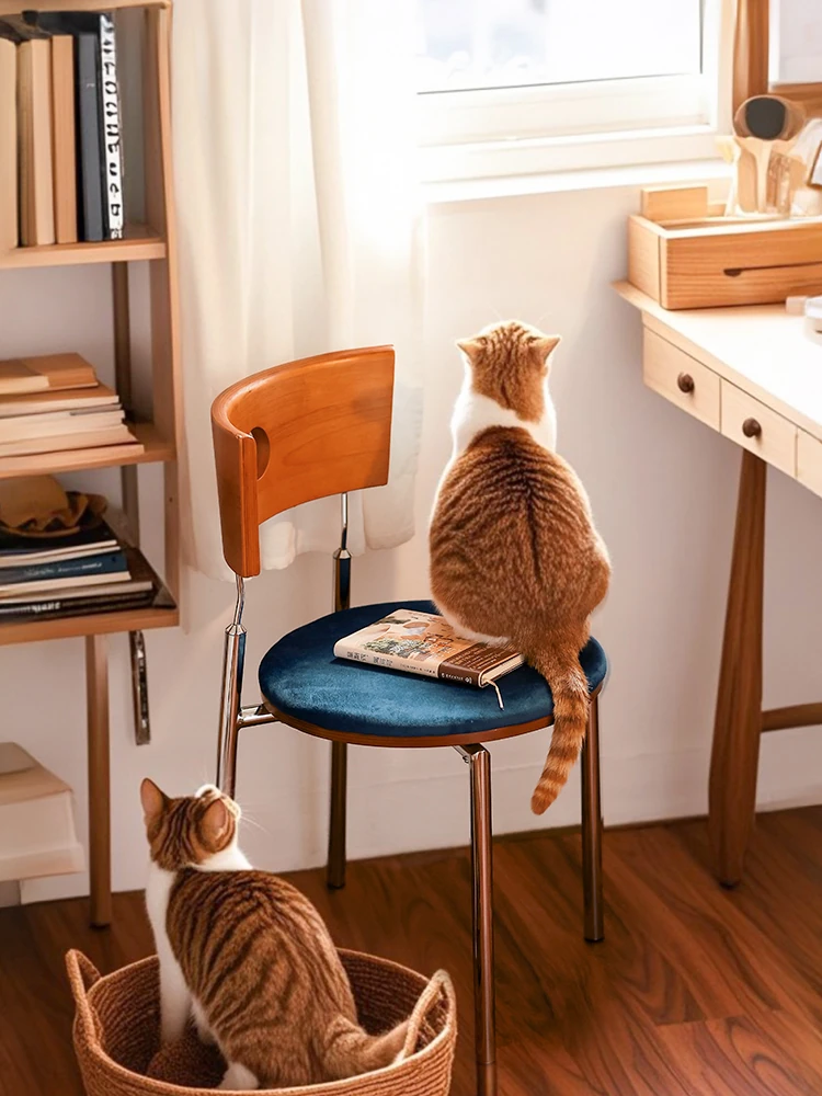 おしゃれなヴィンテージ風の無垢材キャットイヤーダイニングチェア!家庭用のクリエイティブな背もたれ付き、柔らかいクッションでリラックスできる一人用デスクチェア。化粧台やメイク用スツールにも最適です!