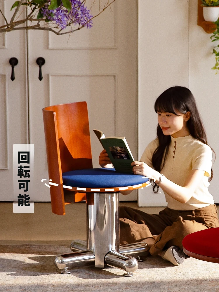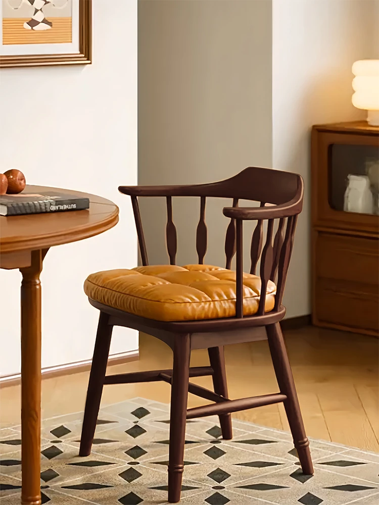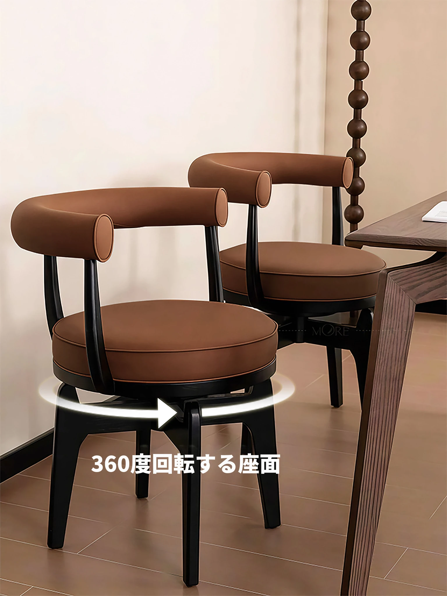 レトロ風の高級木製回転ソフトパッケージ革製ダイニングチェア|リビング、書斎、寝室に最適な背もたれ付きメイクアップチェア!快適さとスタイルを両立させた一品です。