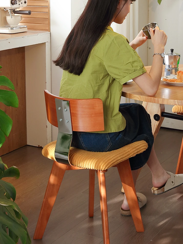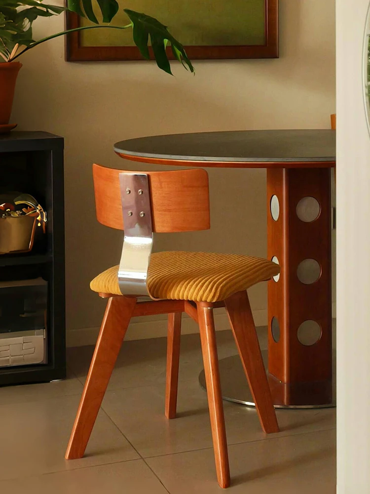 中世代レトロスタイルの無垢材ダイニングチェア・テーブルセット!背もたれ付きで快適、書斎やドレッサーにぴったり。バウハウスデザインの家庭用回転椅子で、スタイリッシュな空間を演出します!