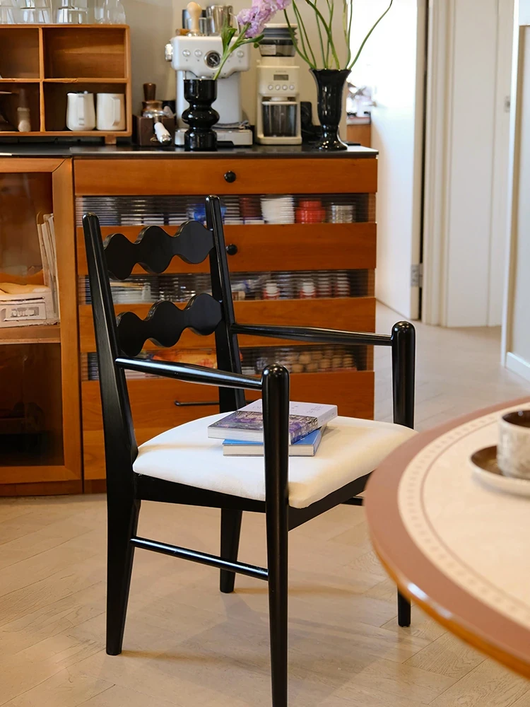 フレンチビンテージ無垢材ダイニングチェア|家庭用中古ムッシャーチェア|デザイナーの化粧台スツール|アームレスト付き背もたれダイニングチェア|おしゃれで機能的な食卓の必需品!