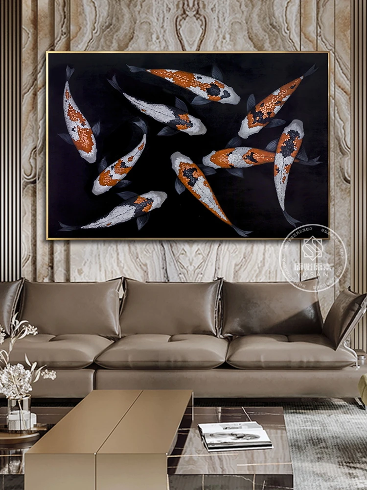 現代玄関用立体紙芸術装飾画「九匹の魚」壁掛けアート - 客間の背景にぴったり!幸運を呼ぶ素敵な意味を持つ作品です。
