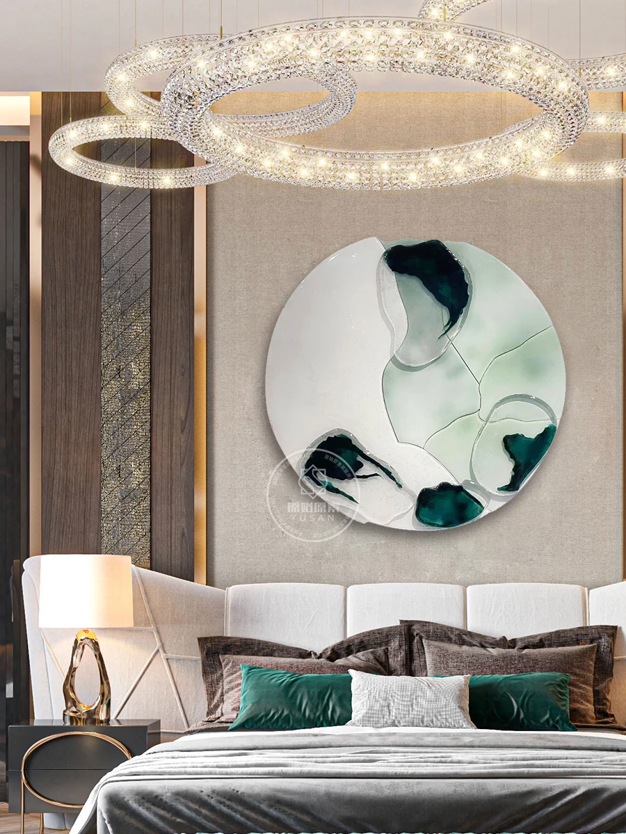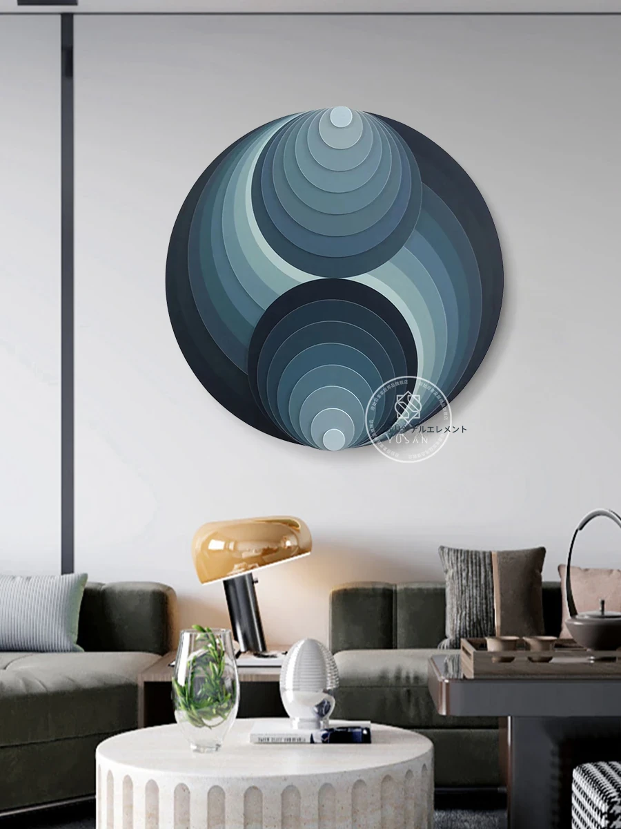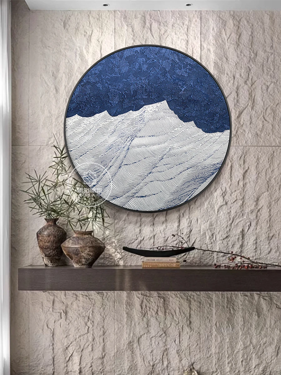 モダンでシンプルなデザインの青色彫刻テクスチャー手描き装飾画 - 丸型新中式リビング、廊下、寝室にぴったりの壁掛けアート!お部屋を華やかに彩る一品です。