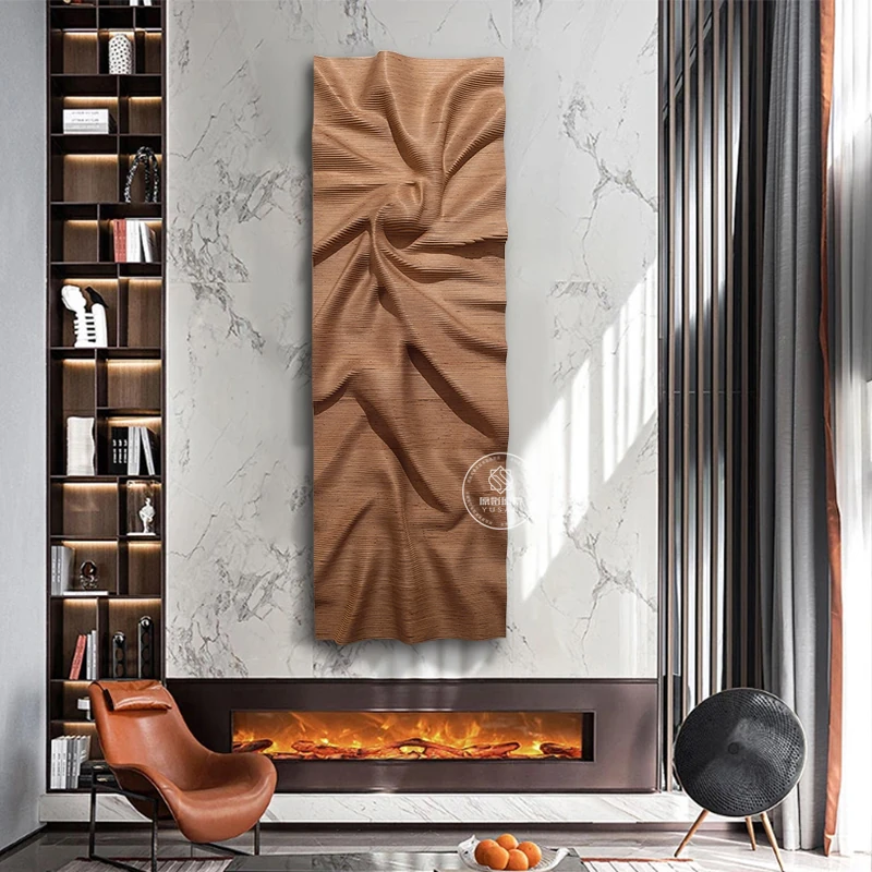 シンプルで迫力のある3D立体彫刻装飾画 - 高級別荘やホテルの壁にぴったりな木彫りの掛け画、独特なしわデザインで空間を華やかに演出!