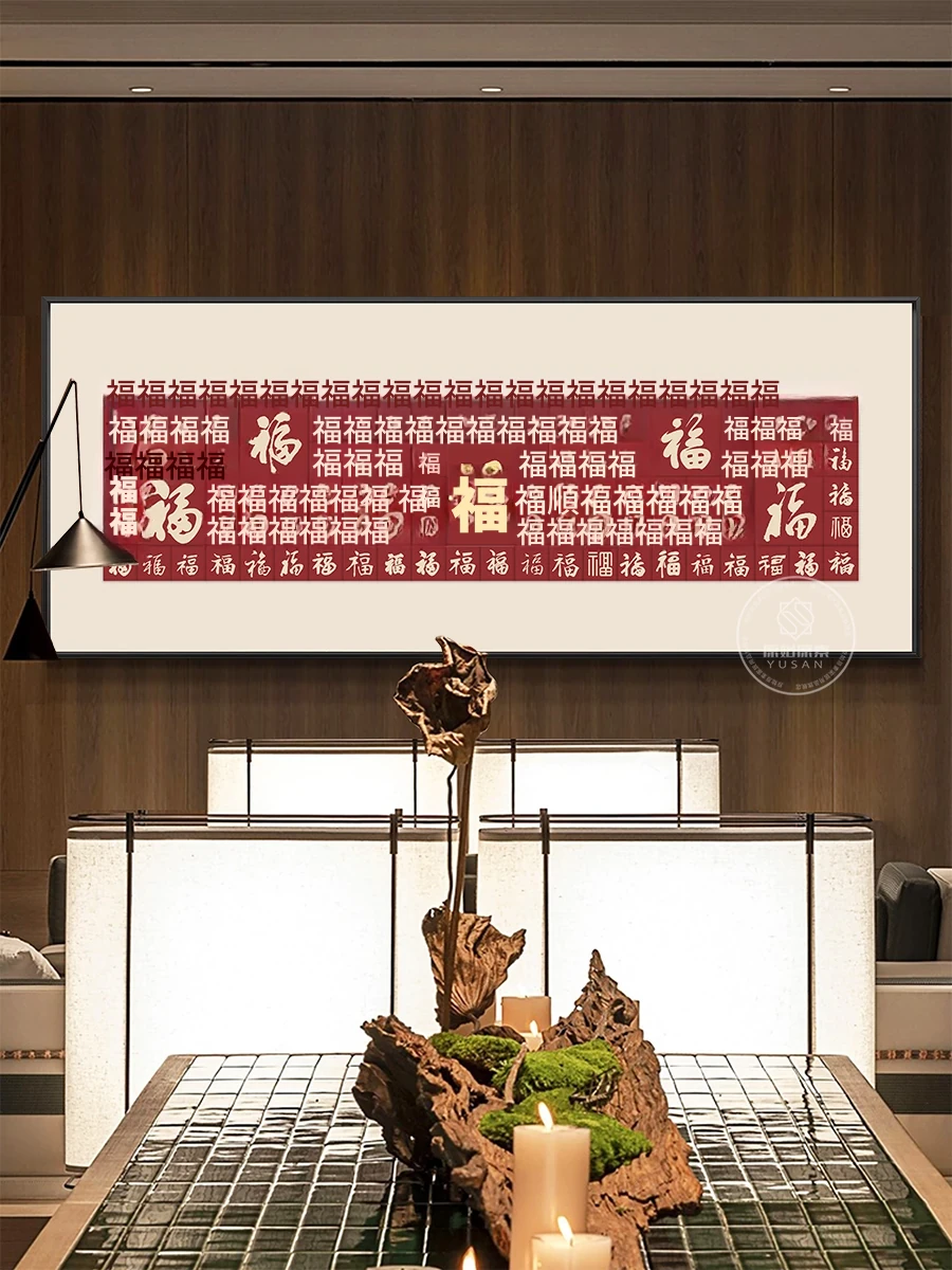 新中式の立体的な百福図装飾画 - レストランやリビングに最適!茶室にもぴったりな福字入りの喜びの彫刻掛け画で、幸運を呼び込むおしゃれなインテリアを演出します。