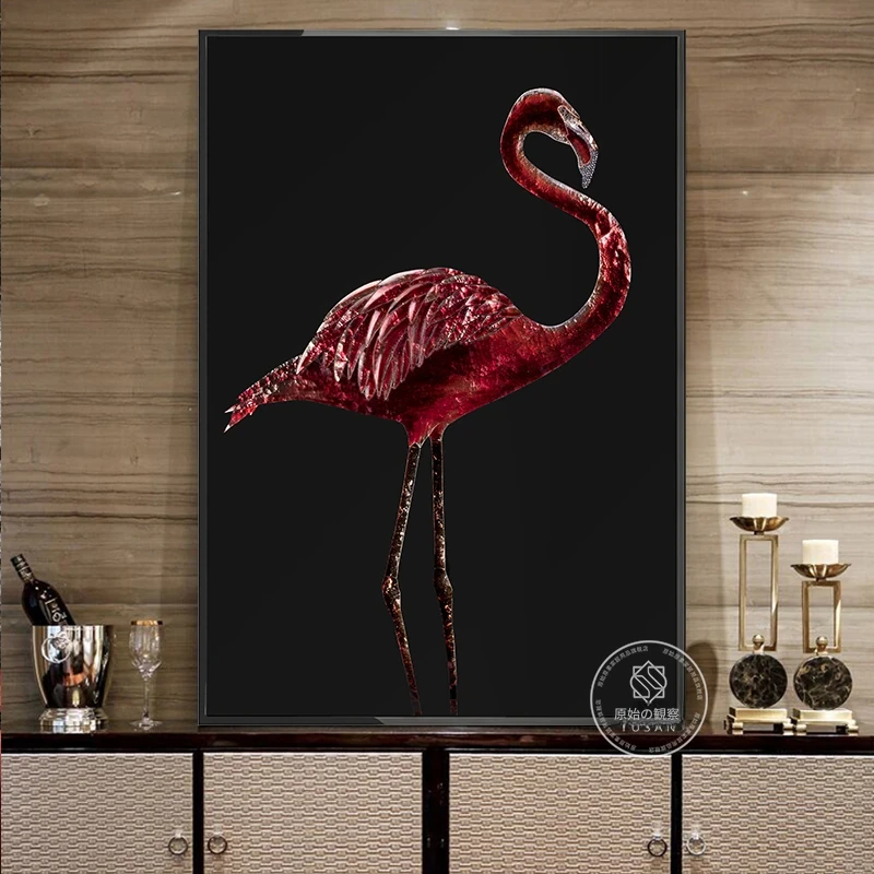 エレガントな玄関装飾画|立体的なダイヤモンド装飾|シンプルで洗練されたイタリアンデザイン|高級感溢れるフラミンゴのアート|リビングやモデルルーム、廊下に最適な掛け画!