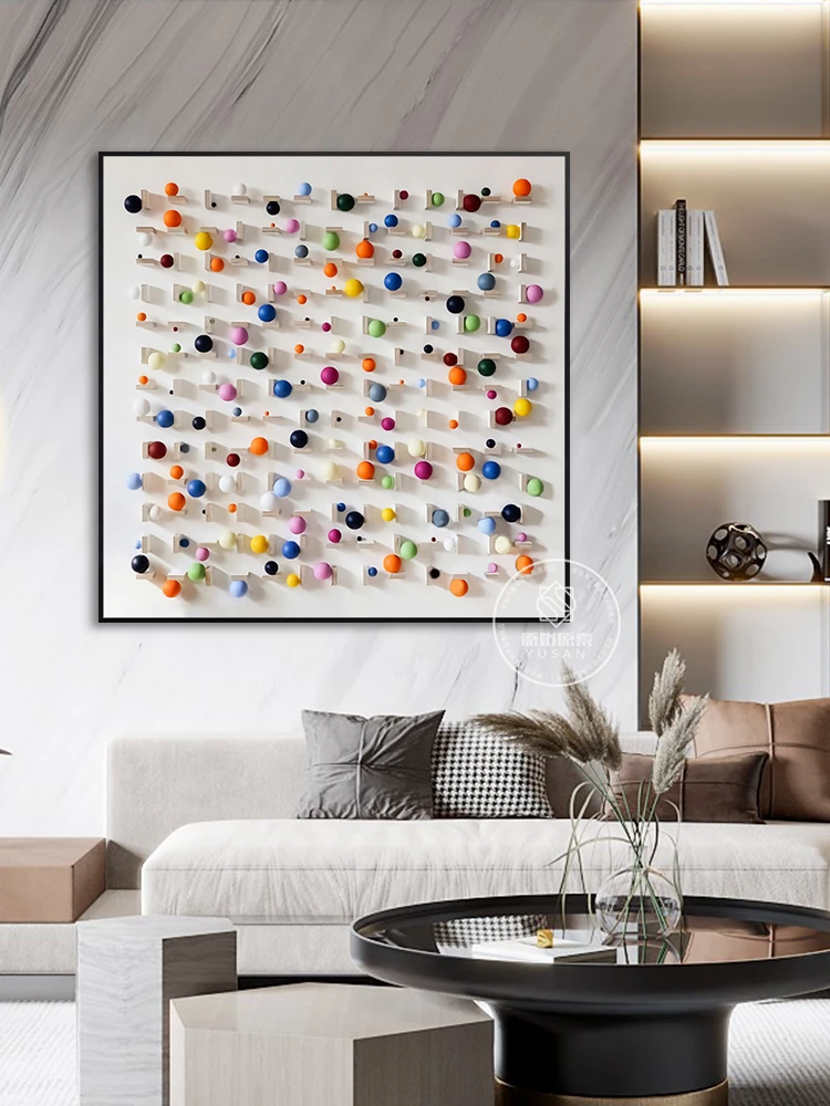 現代的個性的クリエイティブな球体立体アート装飾画 - 木製のカラフルなボールで、子供部屋や寝室を彩る完璧な掛け画!