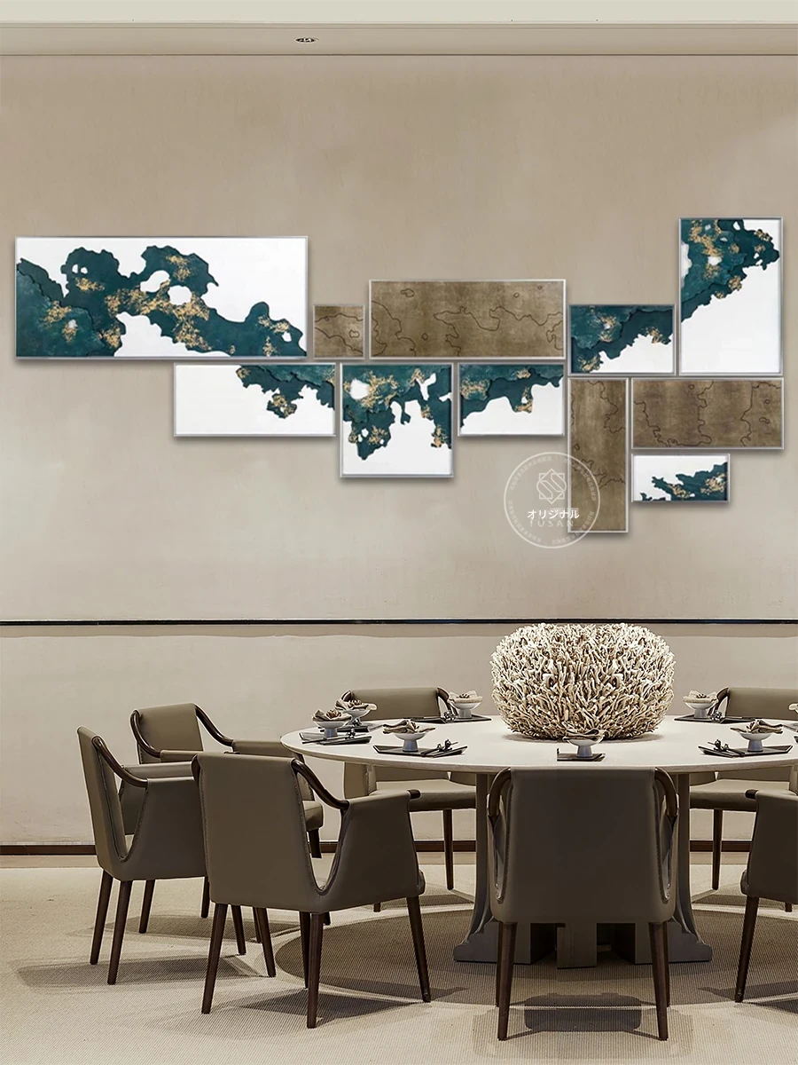 新中式スタイルのリビングルームにぴったり!洗練された背景壁の装飾画セット - ヴィラやクラブに最適な手描きテクスチャーの油絵で、洗練された雰囲気を演出します。
