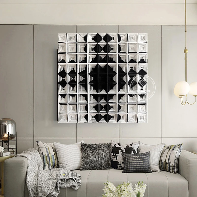 軽やかな上質感のある寝室用装飾画!モダンでシンプルなデザイン、リビングや廊下、玄関にぴったりのフリンジ立体アート。ベッドサイドを華やかに彩る壁画で、あなたの空間を特別なものに。