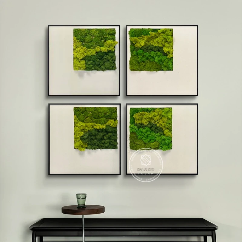 立体モスグリーン植物デコレーション画 四連壁掛け 絵画 リビングや玄関にぴったり!リアルなグリーン装飾でお部屋を彩り、癒しの空間を演出します。モデルルームのような素敵な壁面を実現!