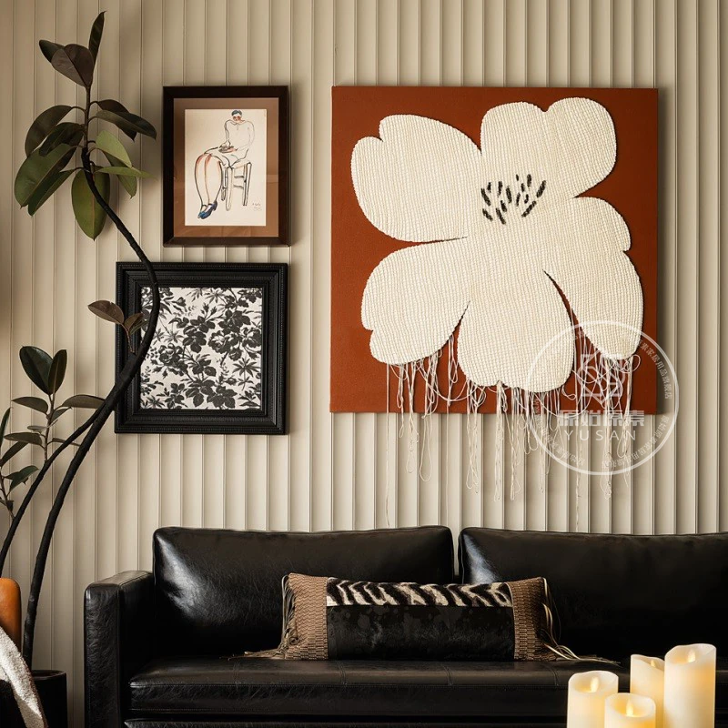 クリーム風テイストのリビングルーム装飾画!花を編み込んだ立体アートで、おしゃれなソファの背景を演出。デザイナーのこだわりが詰まった組み合わせ掛け画で、あなたの空間を華やかに彩ります。