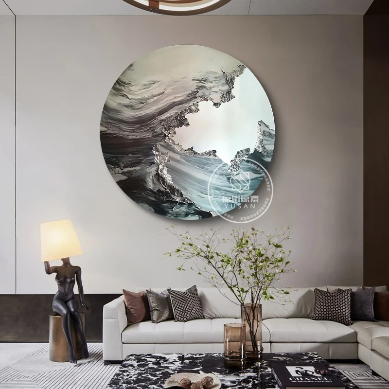 ラグジュアリーな円形ミラー装飾画|現代的なリビングや玄関にぴったり|立体的なメタリック感が魅力の高級ナノコーティング掛け画|あなたの空間を格上げする一品です!