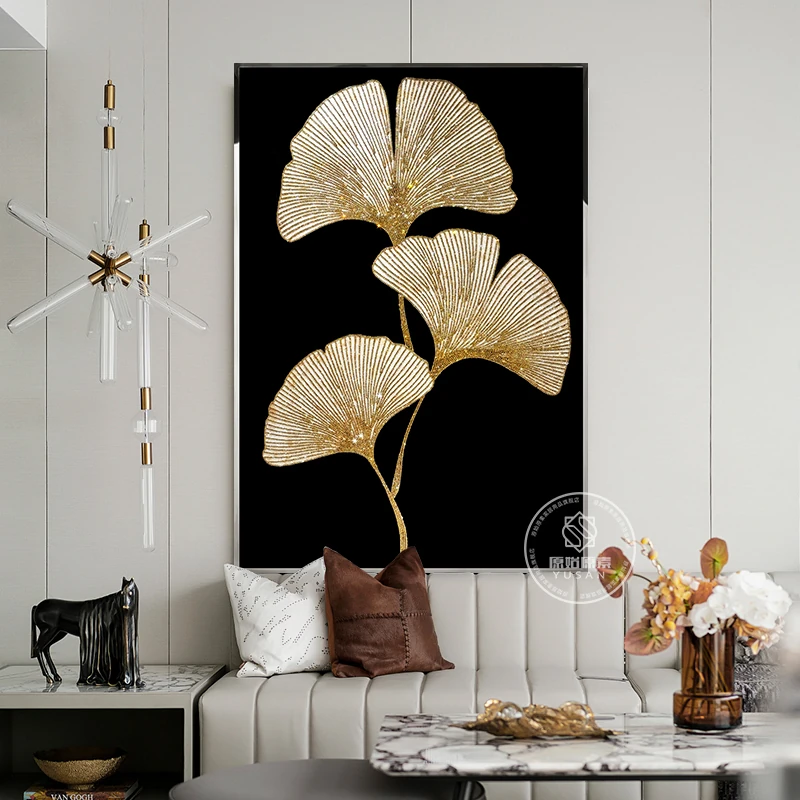 エレガントな玄関装飾画!イチョウの葉をモチーフにしたクリスタルダイヤモンド付きの美しい壁画。食卓やリビング、廊下にぴったり!幸運を呼び込む素敵な意味が込められています。