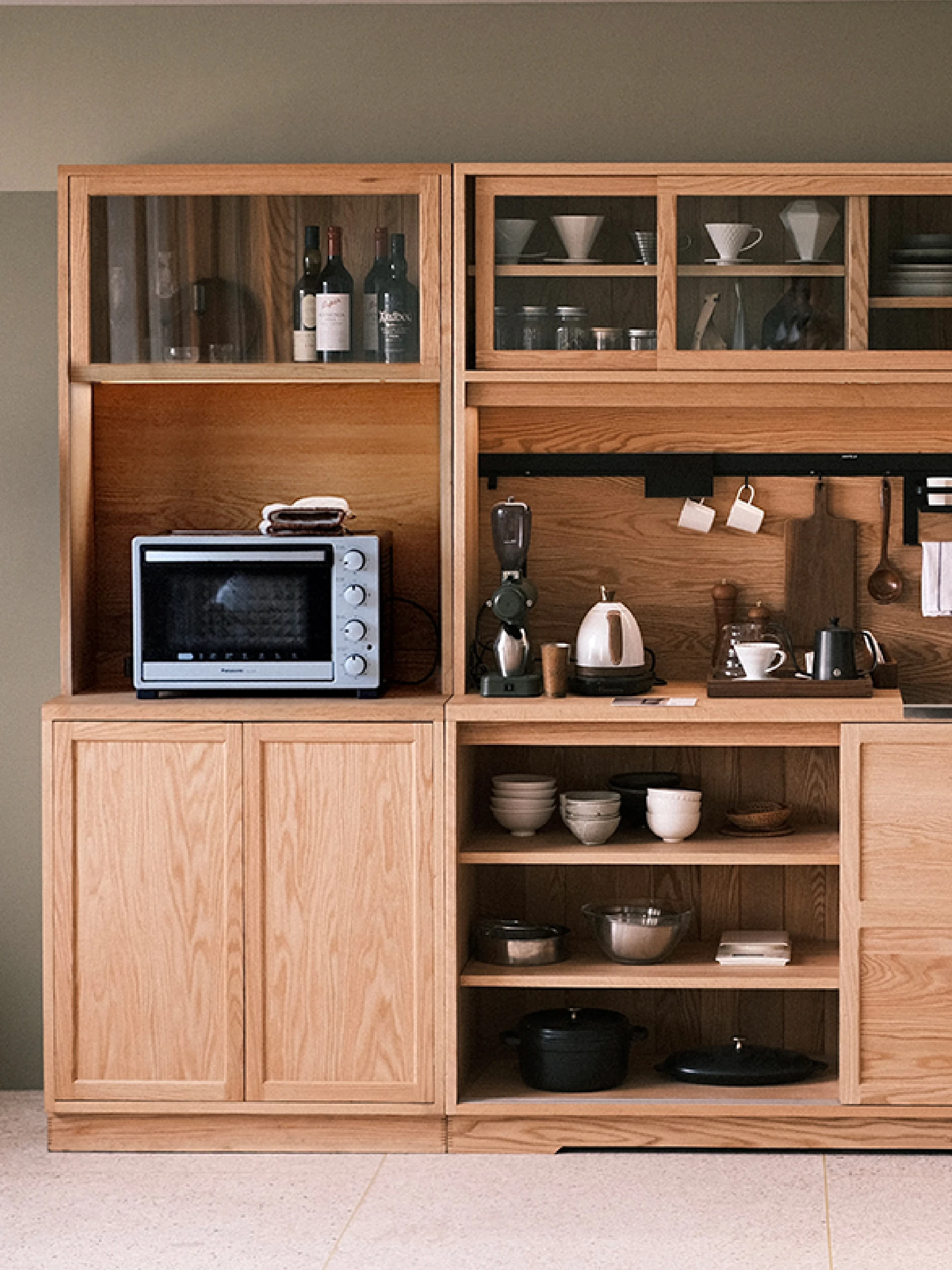 MUMO Solid Wood Scandinavian Minimalist Kitchen Side Cabinet - Stylish and Functional Storage Solution for Your Dining Area