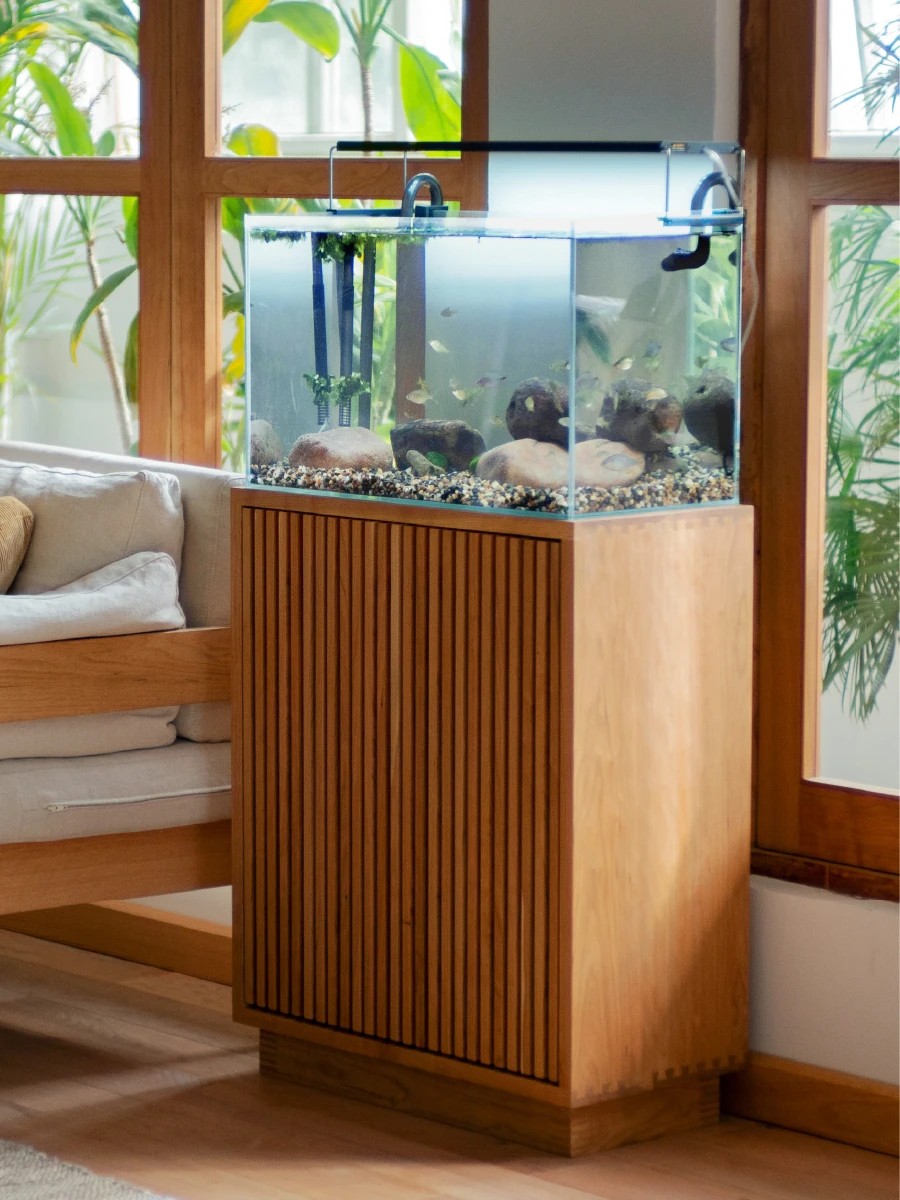 MUMO Wooden Single-Door Grid Cabinet - Versatile Solid Wood Storage Stand for Fish Tanks, Multi-Functional Living Room Storage Cabinet