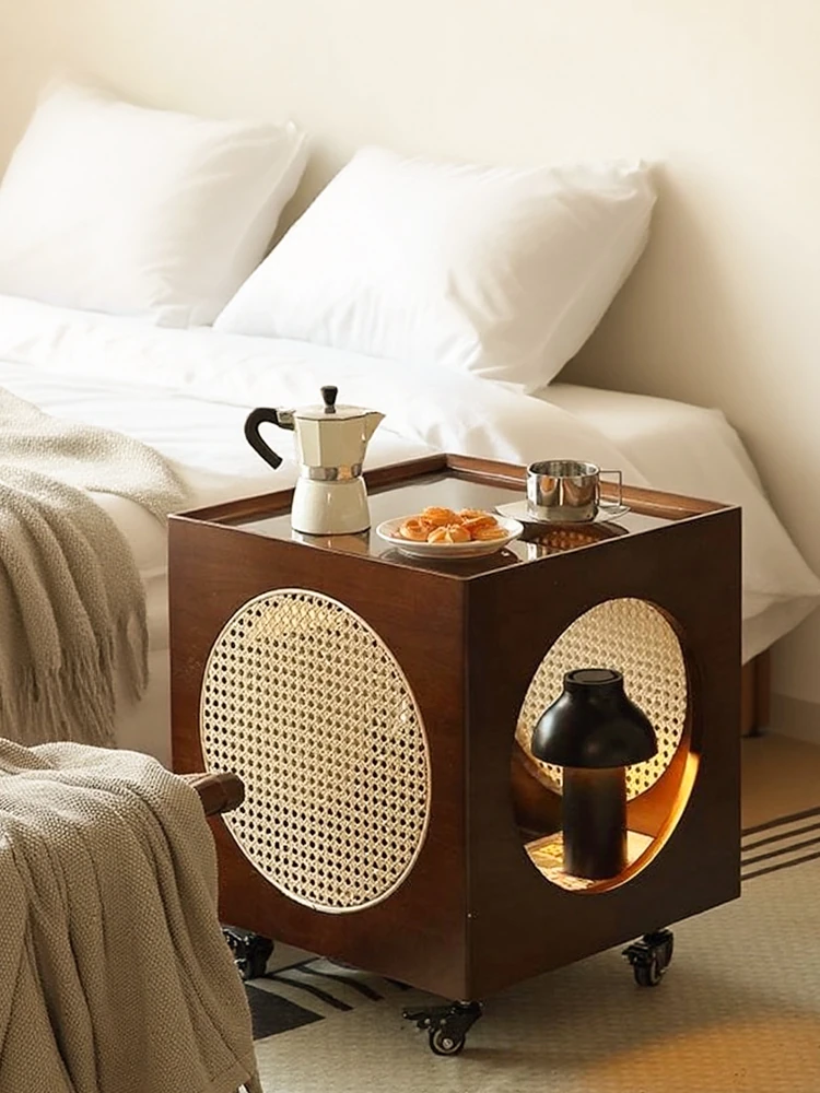 Vintage Solid Wood Nightstand - Versatile Side Table for Living Room & Kitchen, Movable Cart and Storage Rack, Perfect for Sofa or Dining Area