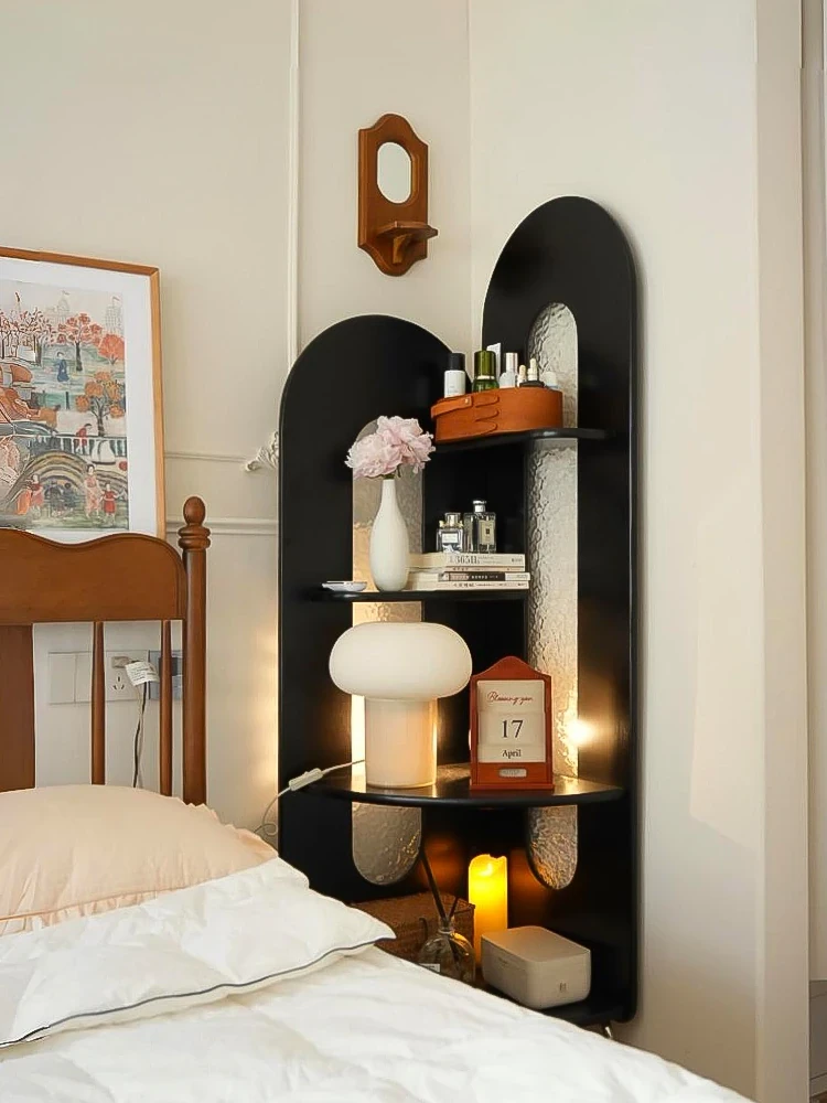 French Vintage Solid Wood Corner Nightstand - Triangular Storage Shelf for Dining Area, Perfect for Living Room, Entryway, and Sofa Spaces - Stylish and Functional Home Décor