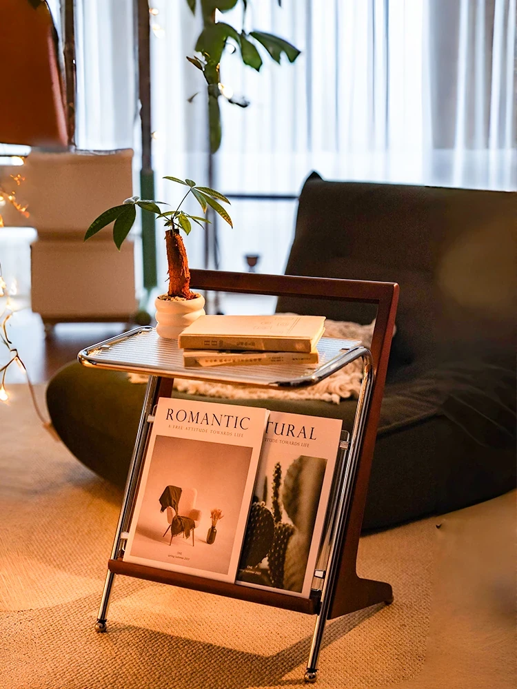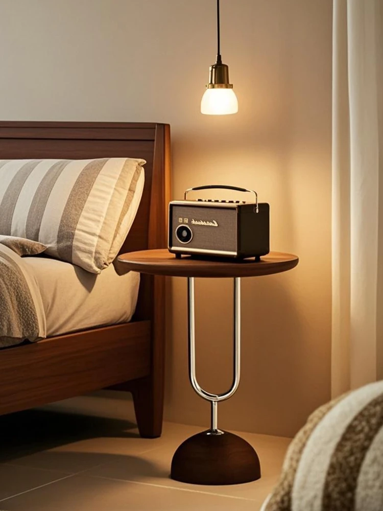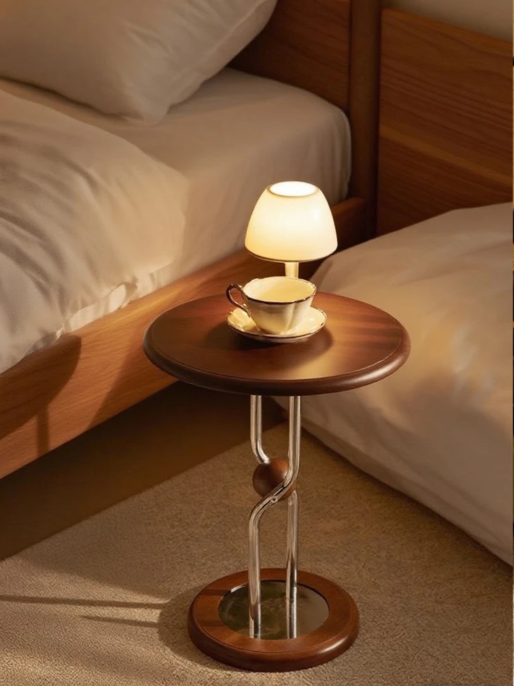 Vintage Solid Wood Side Table with Stainless Steel Legs - Perfect Mini Snack Table for Small Spaces, Bedroom Nightstand, or Sofa Side Storage Solution.