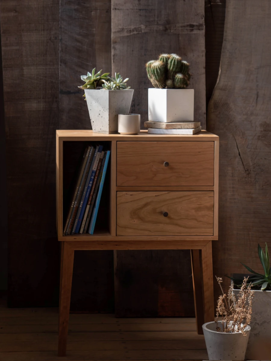 MUMO Minimalist Bedside Table - Made of Red Oak, Cherry Wood, and Black Walnut - Elegant Solid Wood Furniture for Your Bedroom