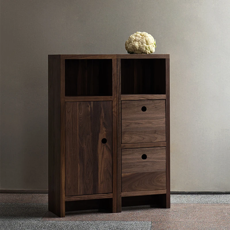 MUMO Wooden Display Cabinet - Nordic-Japanese Style Black Walnut Solid Wood Storage Shelf for Organized Display and Storage