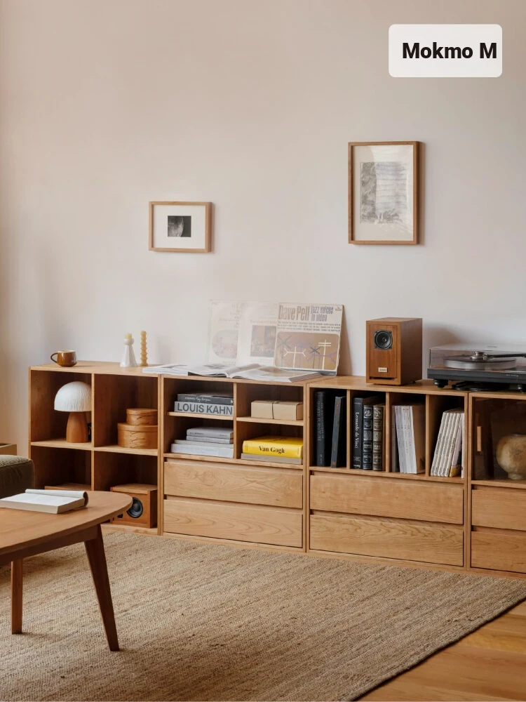 MUMO Cherry Wood Minimalist Round-Leg Single Layer Double Layer Storage Cabinet - Eco-Friendly Japanese Solid Wood Bookshelf and Organizer
