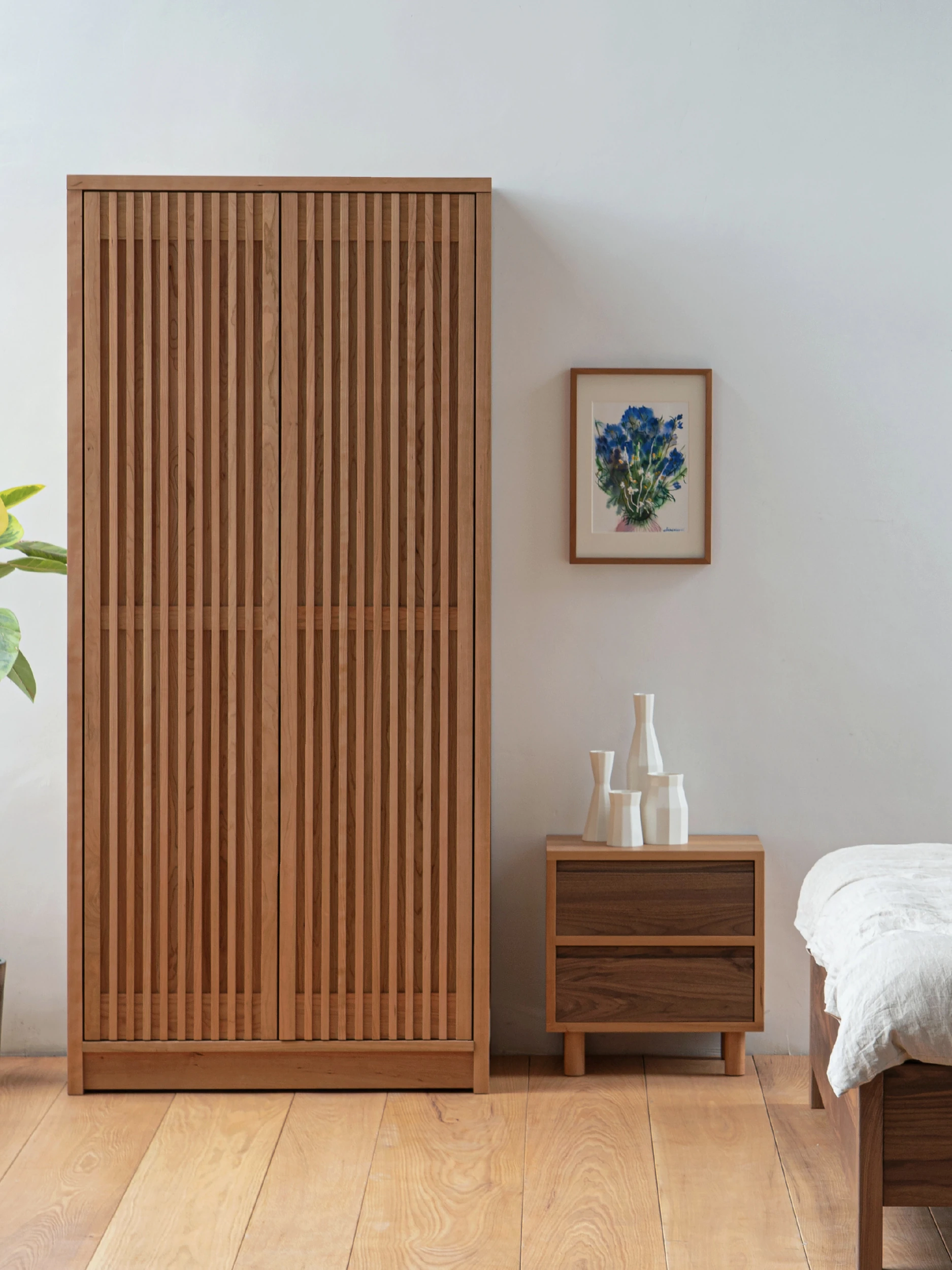 MUMO Wood Ink Simplistic Vertical Cabinet - Natural Black Walnut and Cherry Wood Wardrobe for Modern Minimalist Bedrooms