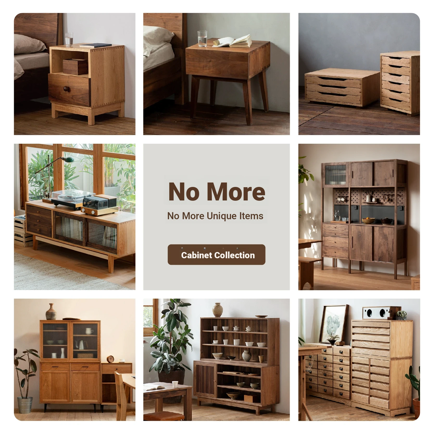 MUMO Wooden Sixteen-Drawer Cabinet - Scandinavian Black Walnut Solid Wood Storage Sideboard, Eco-Friendly Japanese Design for Ample Organization and Style
