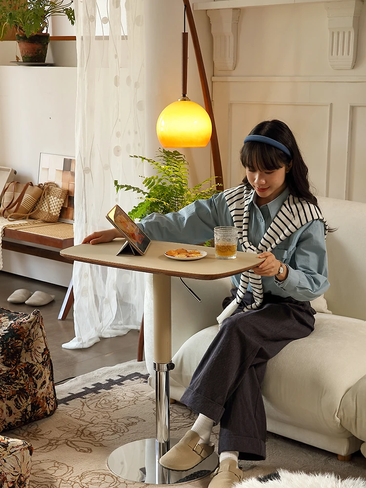 Modern Minimalist Liftable and Rotatable Side Table - Perfect for Small Living Rooms, Sofa or Bedside Use, Stylish Leather Corner Table