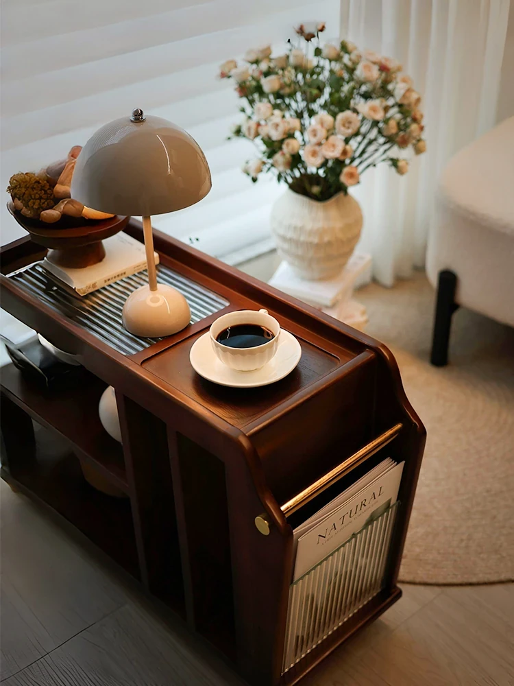 Vintage Solid Wood Side Table Storage Rack - Stylish and Functional, Perfect for Small Living Spaces! Features a Two-Tier Design with Mobility for Easy Organization Next to Your Sofa. Ideal for Modern Homes!