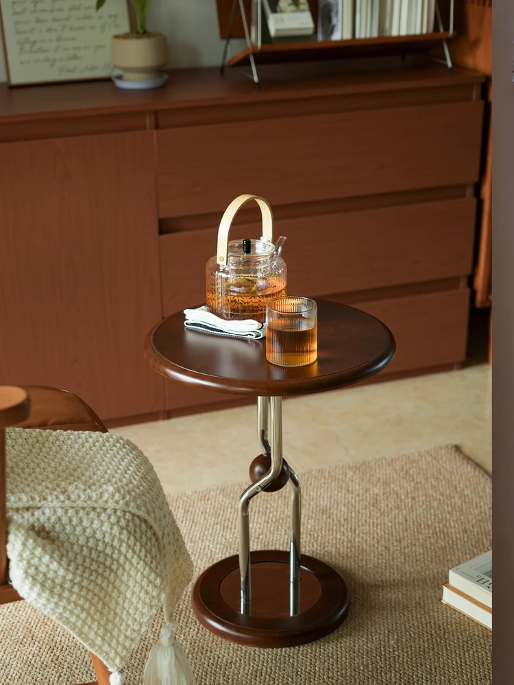 Vintage Solid Wood and Stainless Steel Side Table - Perfect for Small Living Spaces, Ideal for Living Room Sofas, Bedroom Nightstands, and Compact Round Storage Solutions