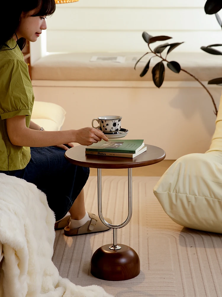 MUMO Solid Wood Mini Round Coffee Table - Perfect for Small Living Spaces, Ideal for Sofa Side, Stylish and Functional Design for Your North American Home