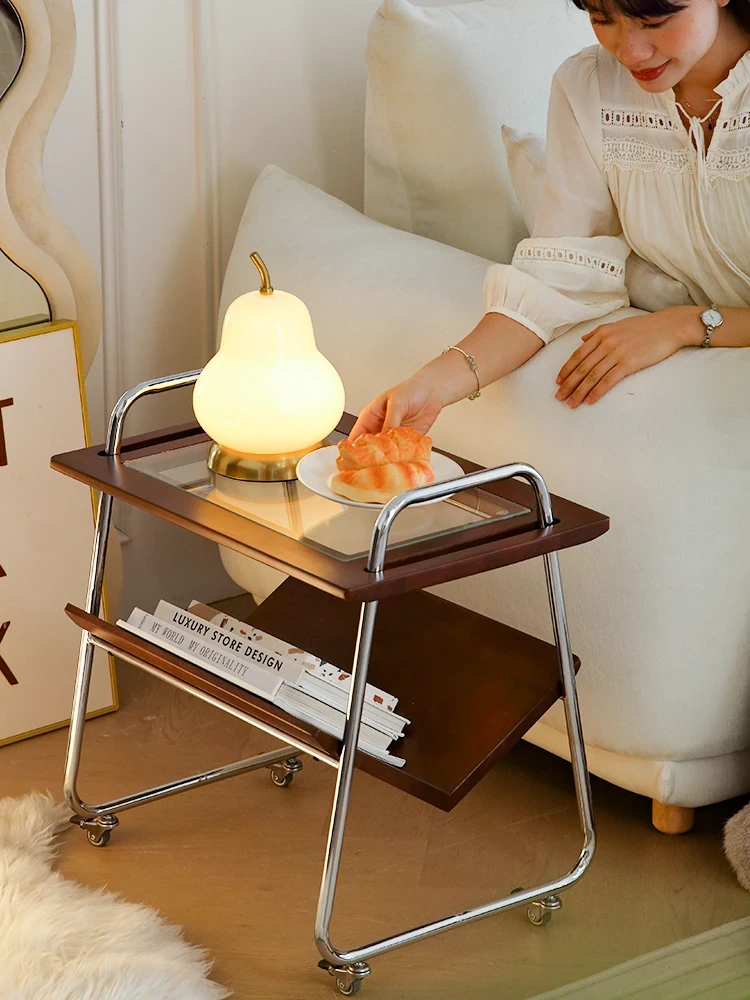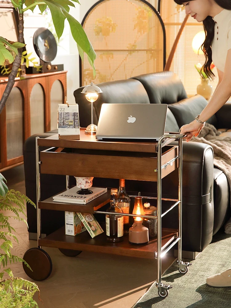 Vintage Style Solid Wood Sofa Side Table with Tea Cart - Mobile Storage Rack for Living Room, Perfect for Tea and Snacks, Ideal Bedside or Side Table