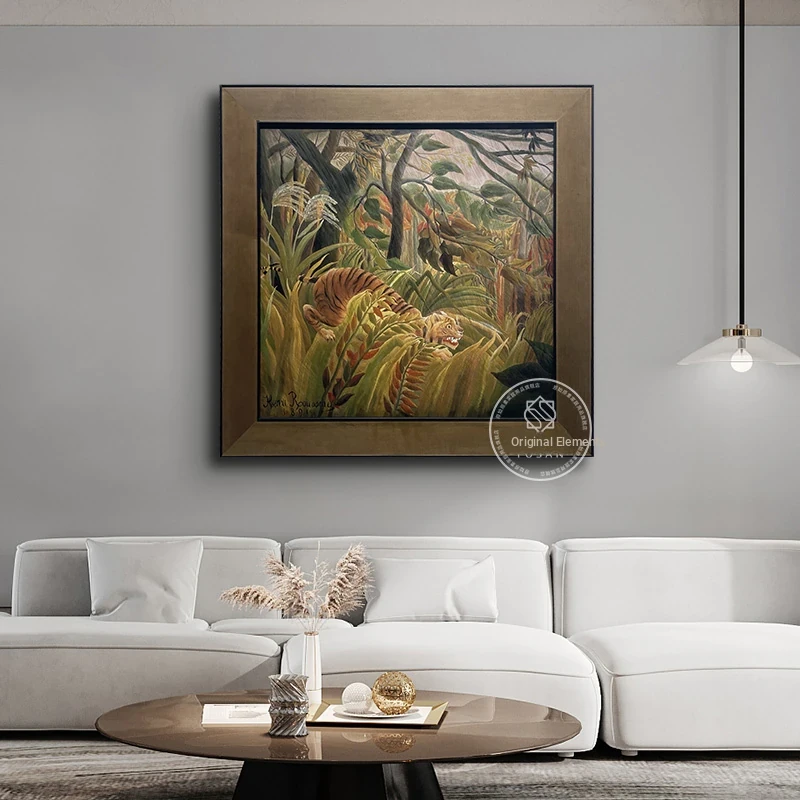 Hand-Painted Oil Painting of Jungle Tiger by Henri Rousseau - "Surprised" Art Piece for Living Room and Dining Room Décor - Premium Quality Wall Art
