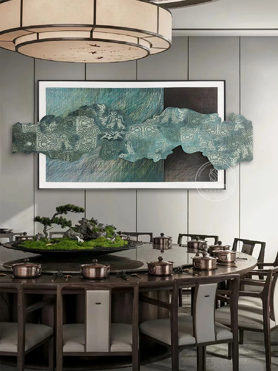 "Elegant New Chinese Style Hand-Painted Texture Art - Zen-Inspired Wall Decor for Living Room Sofa Background, Featuring Dimensional Carvings - Designer Sample Room Artwork"