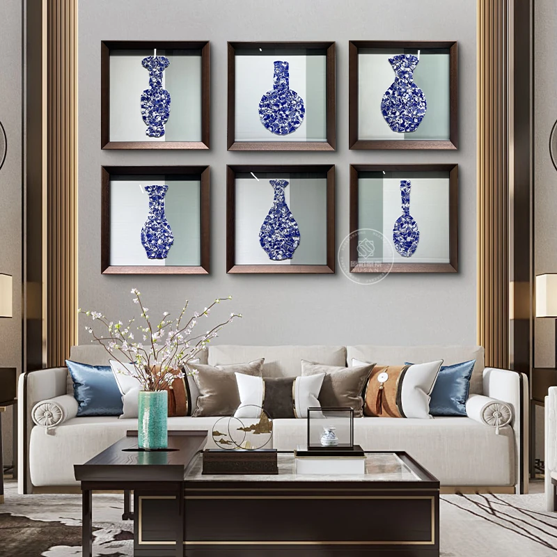 Blue and White Porcelain Decorative Wall Art Set for Living Room - 3D Realistic Hanging Artwork with Vintage Vase Design, Perfect for New Chinese Style Bedroom and Headboard Decor