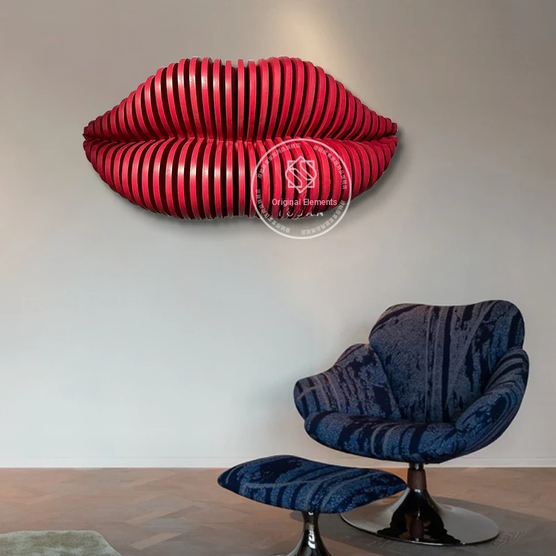 3D Wooden Carved Red Lips Art Wall Decor – Unique Installation for Mall Corridors, Model Rooms, and Restaurants – Eye-Catching Personality Wall Art