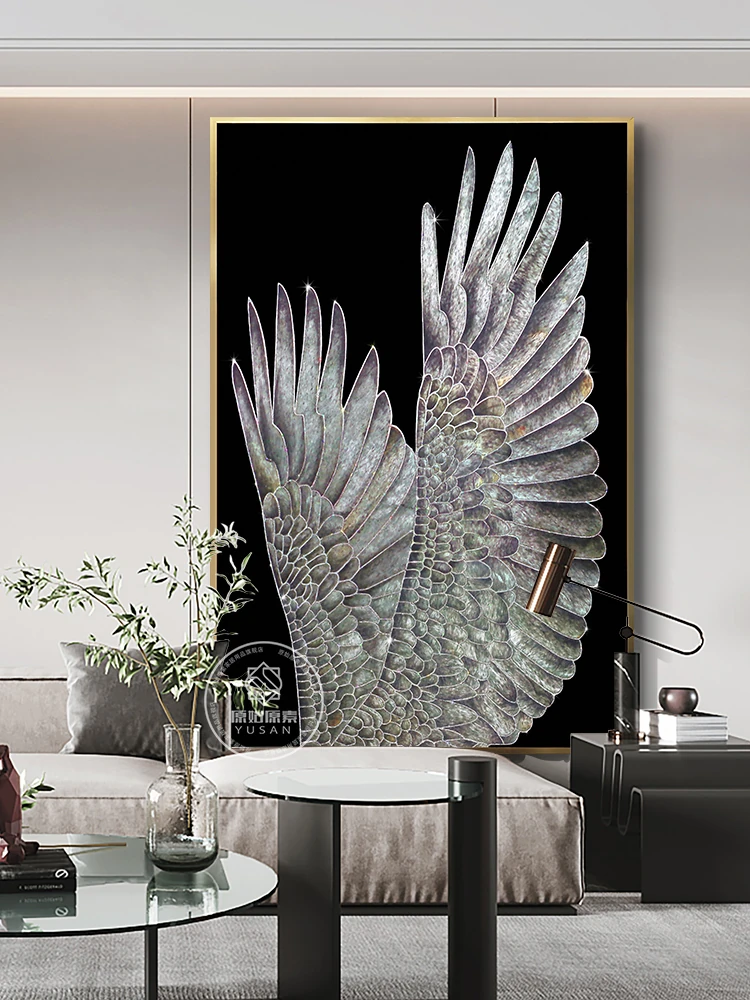 Luxury Feather Wing Wall Art for Entryway – Elegant Crystal-Embellished Ceramic Painting for Living Room and Corridor Décor, Elevate Your Home Aesthetics.