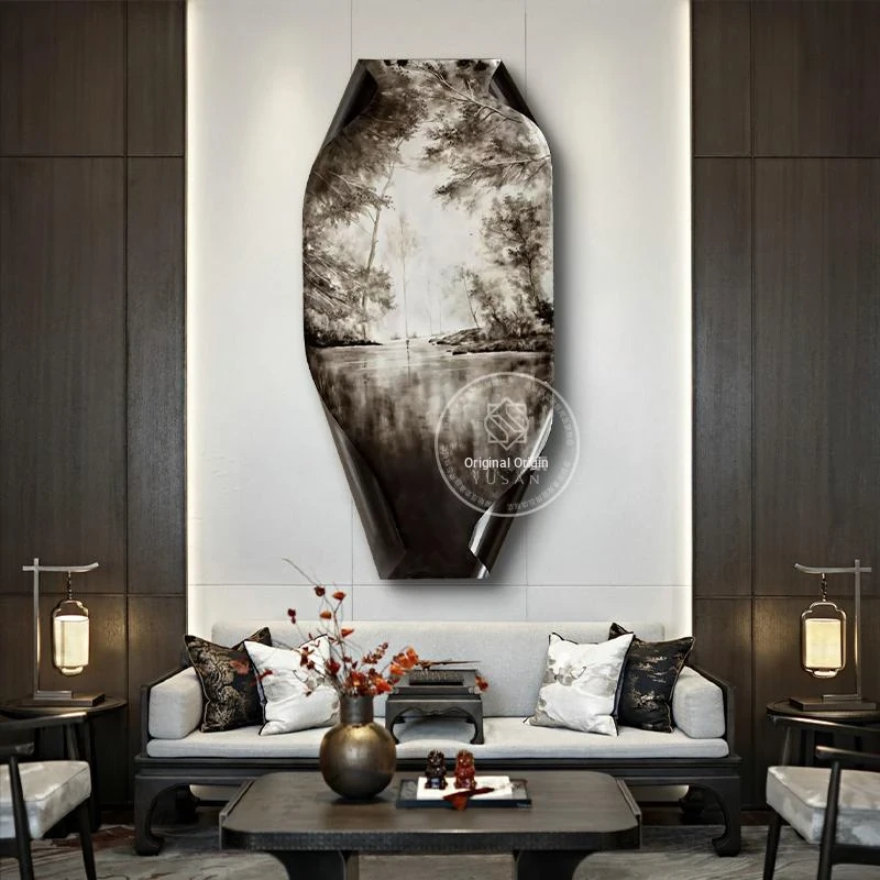 Vintage Style Metal Hand-Painted Wall Art for Living Room & Study - New Chinese Aesthetic Textured High-End Decorative Painting