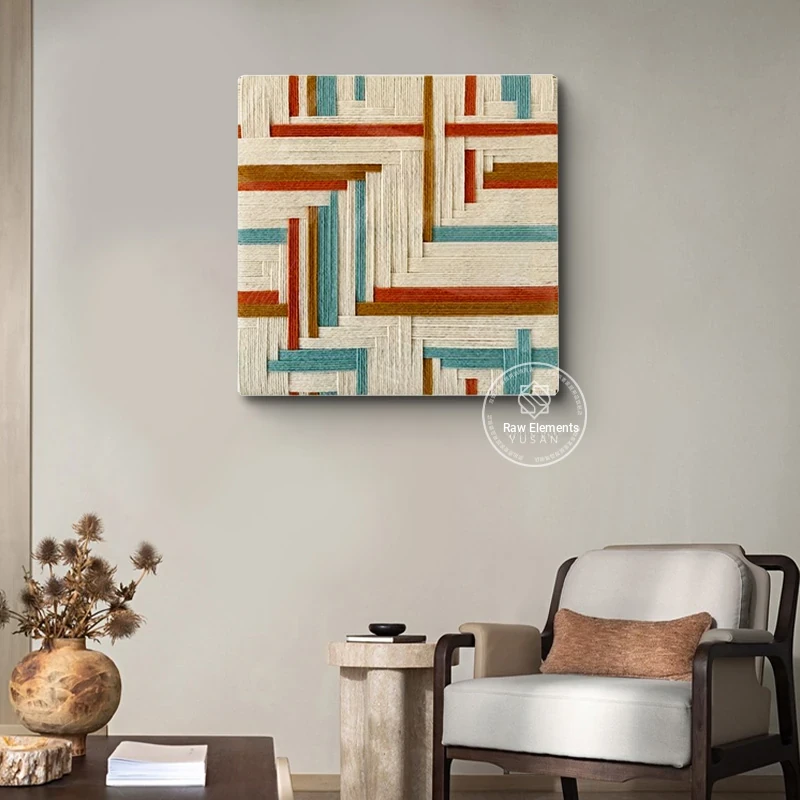 Geometric Line Creamy Style Handwoven Abstract Art Wall Decor for Living Room, Entryway, and Dining Room - Cotton Linen Wall Art