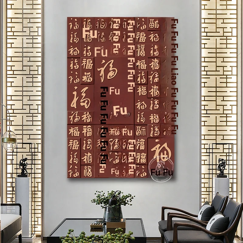 New Chinese Style 3D Carved Wall Art - "Five Blessings" Decorative Panel for Entrance Hall, Wooden Sculpture with Auspicious Characters, Perfect for Home Décor and Welcoming Good Fortune
