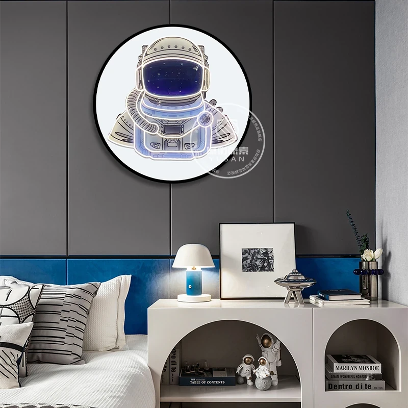 Astronaut Kids' Room Round Wall Art - Modern Bedroom Bedside Decor with Cartoon Astronaut LED Glow Artwork - Perfect for Inspiring Imagination and Adventure!