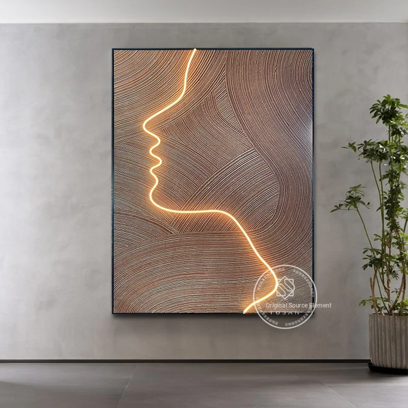 Stylish Entryway Wall Art - Textured Relief Portrait with Ambient Lighting for Hallway and Living Room - Vertical Decorative Lighted Artwork