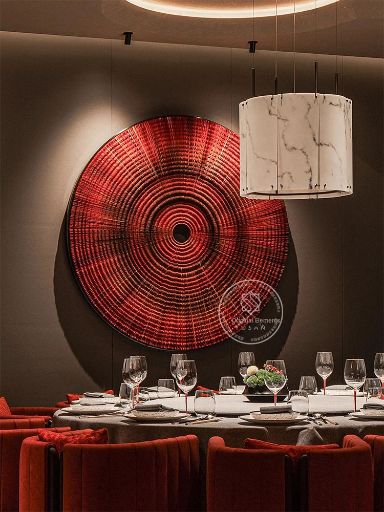 Handcrafted Round Wall Art for Hotels and Villas - Elegant 3D Decorative Painting for Modern Dining Rooms and Contemporary Spaces