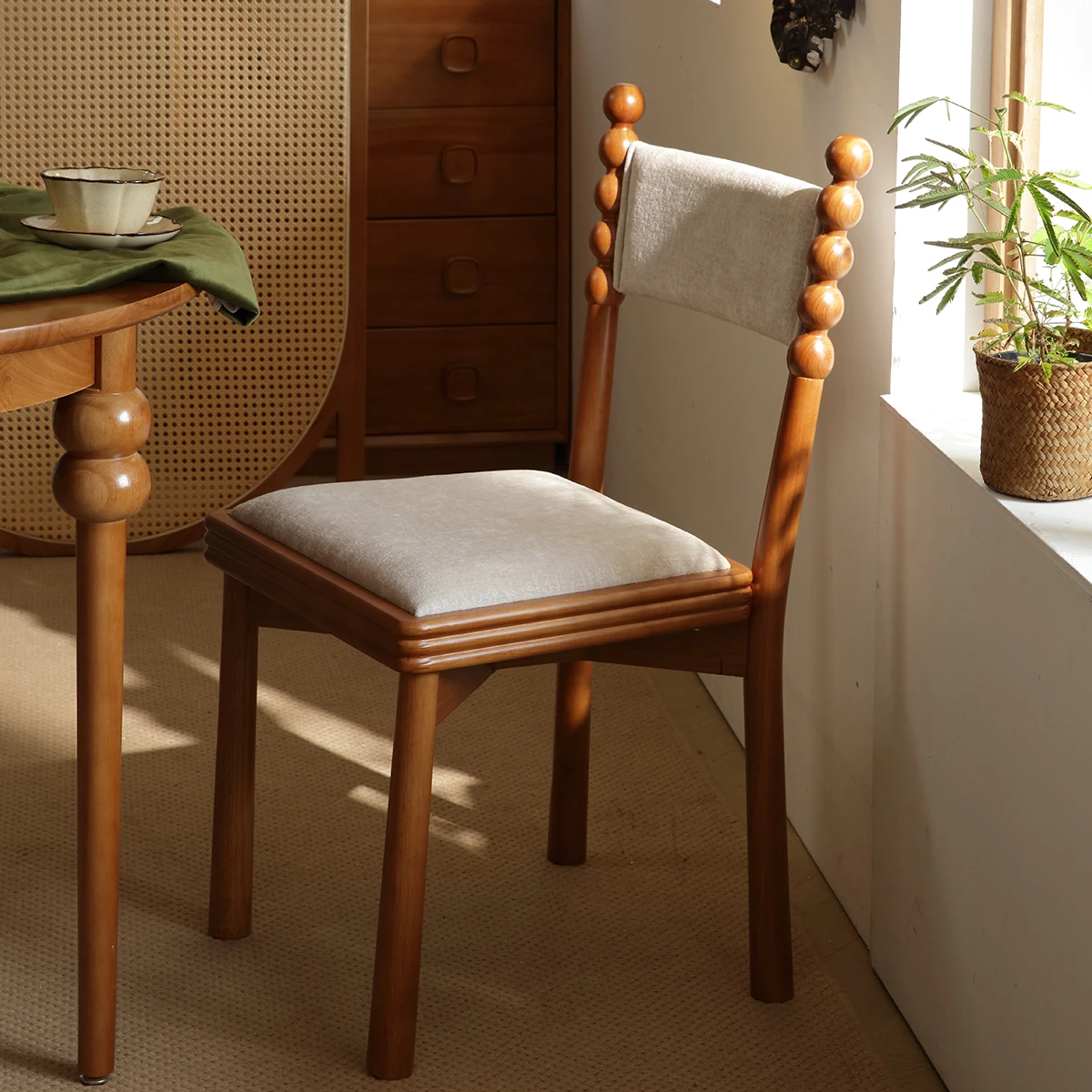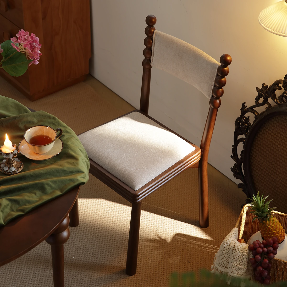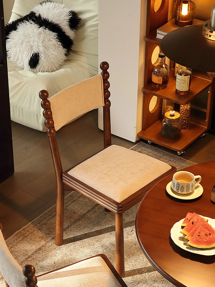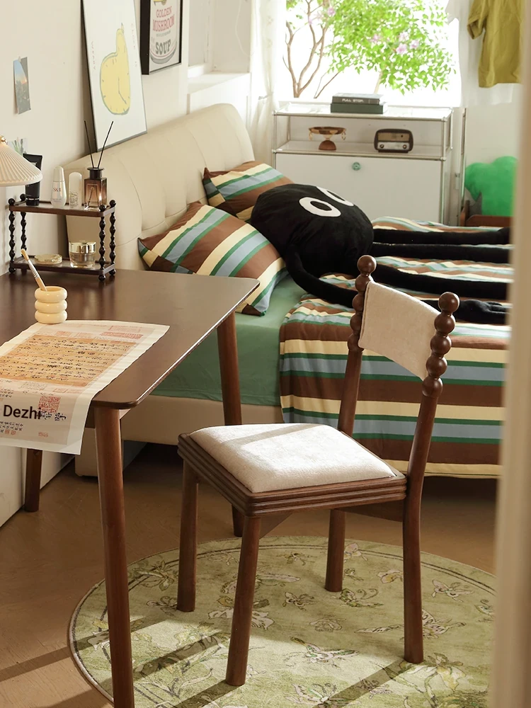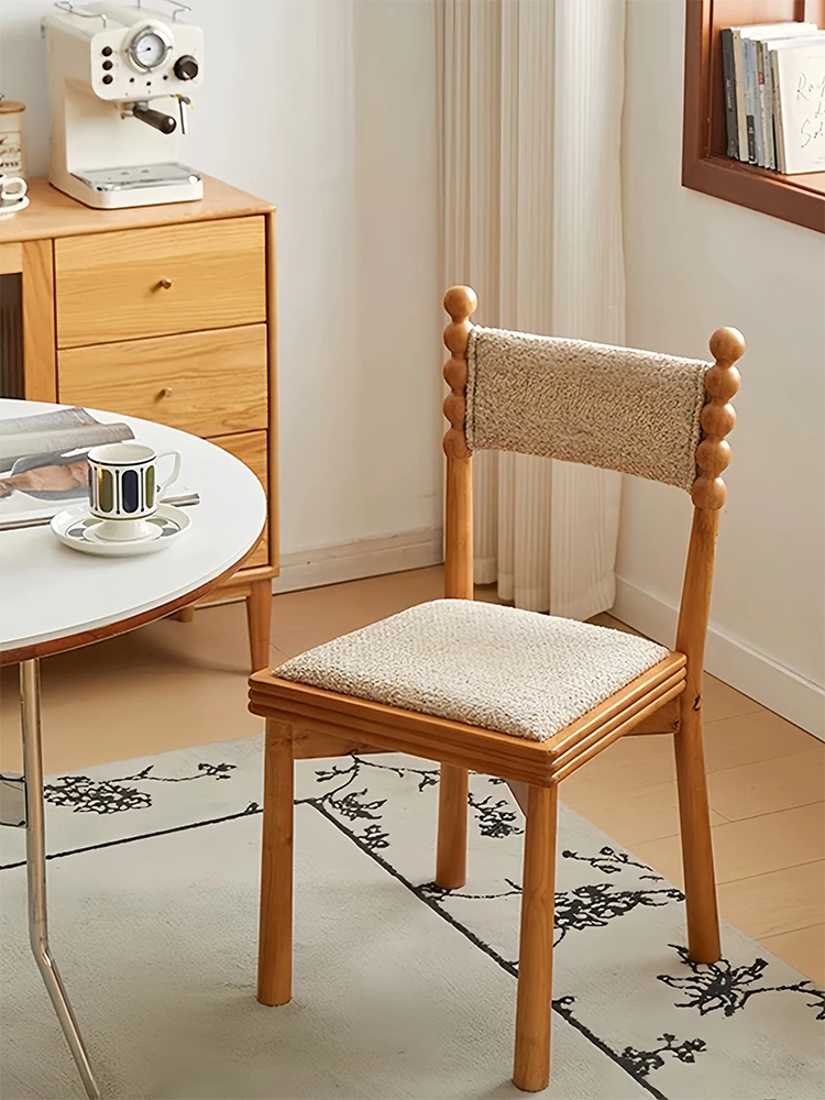 French Vintage High-End Housse Dining Chair - Elegant Solid Wood Soft-Padded Backrest for Living Room, Bedroom, and Makeup Use - Perfect Blend of Style and Comfort