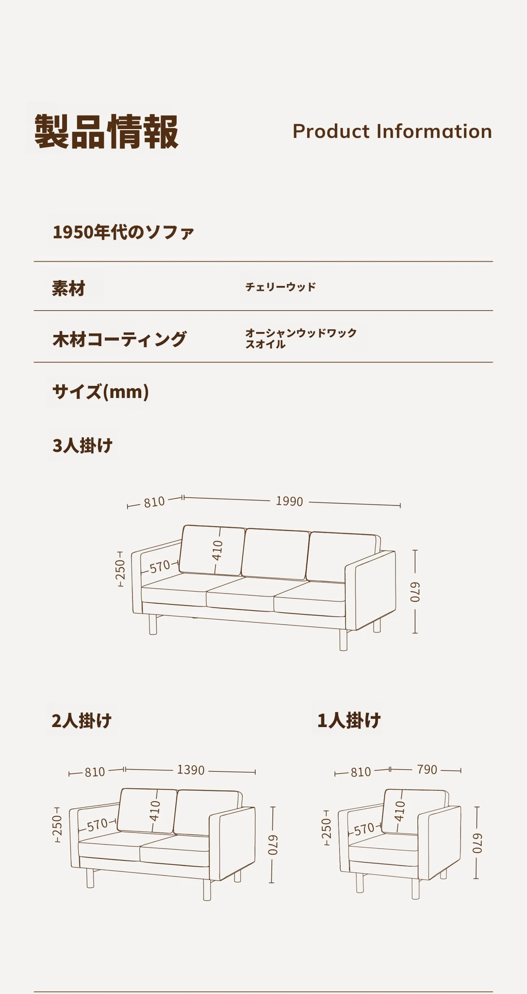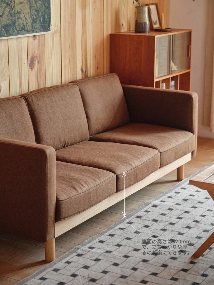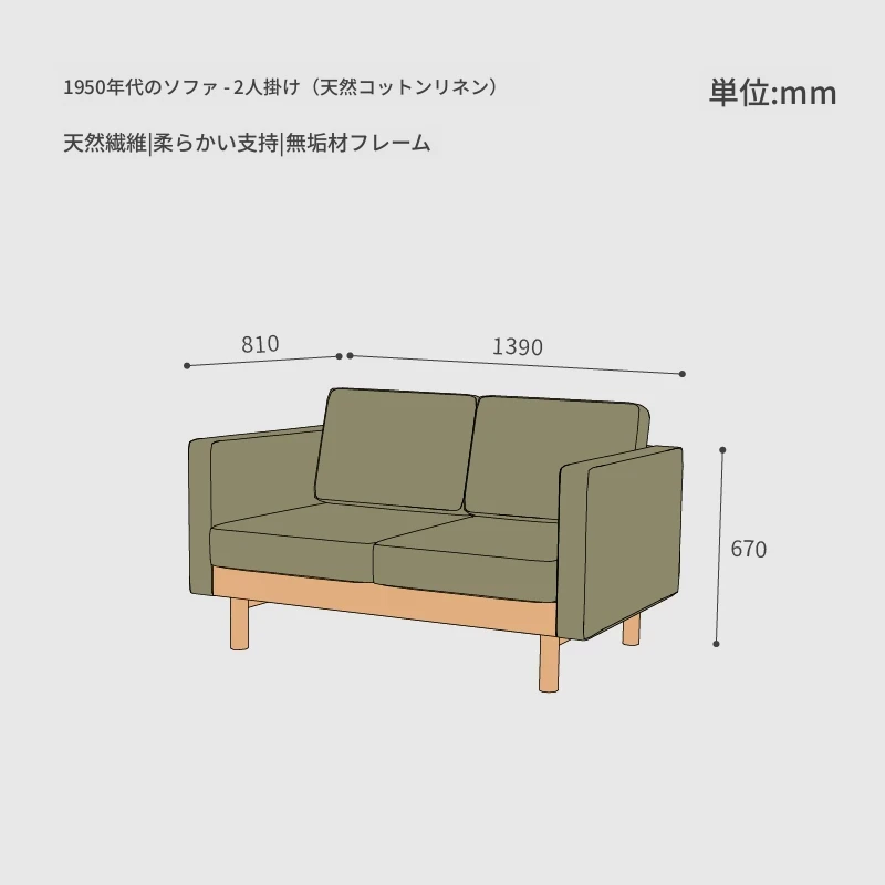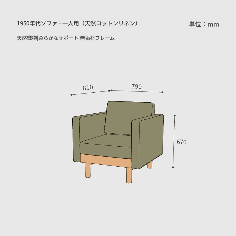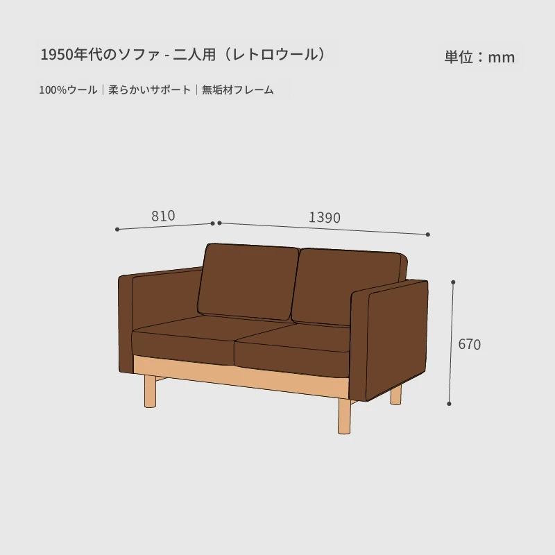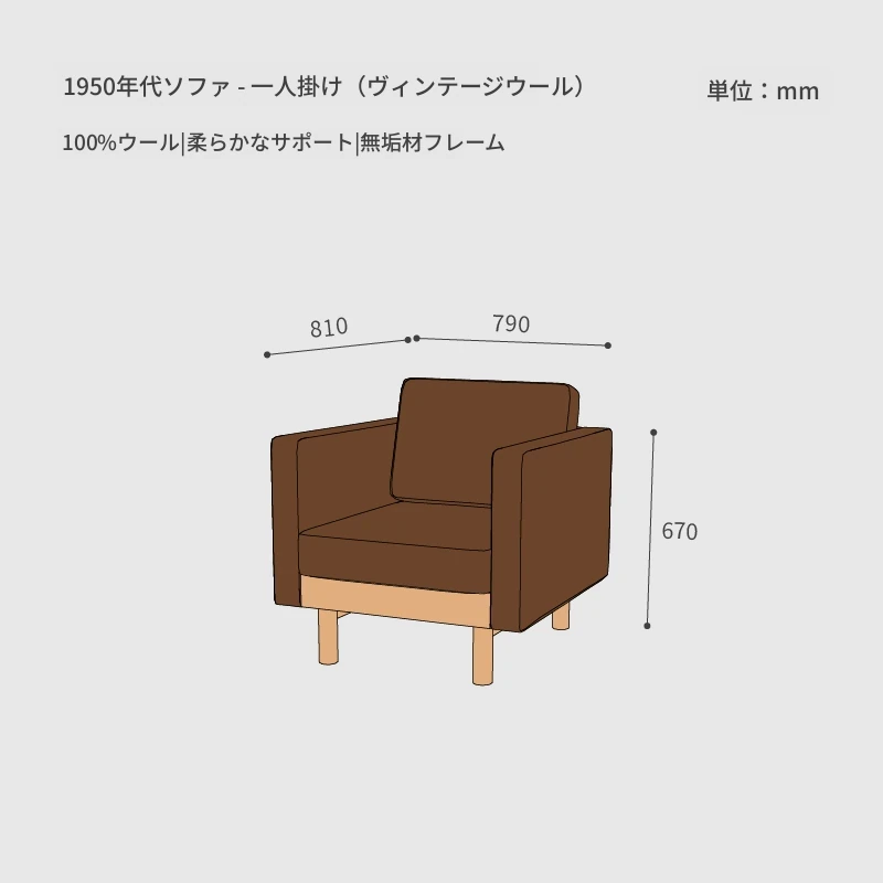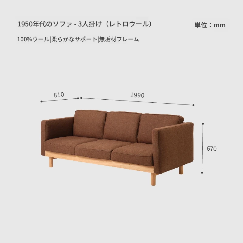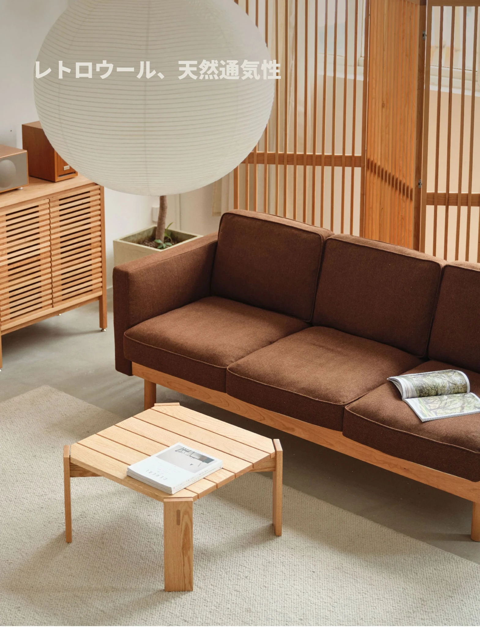 MUMO木墨 1950年代スタイルソファー 羊毛ファブリック使用 一人掛け・二人掛け・三人掛け対応 寝室やリビングに最適な天然木製ソファーで、落ち着いた雰囲気を演出します!