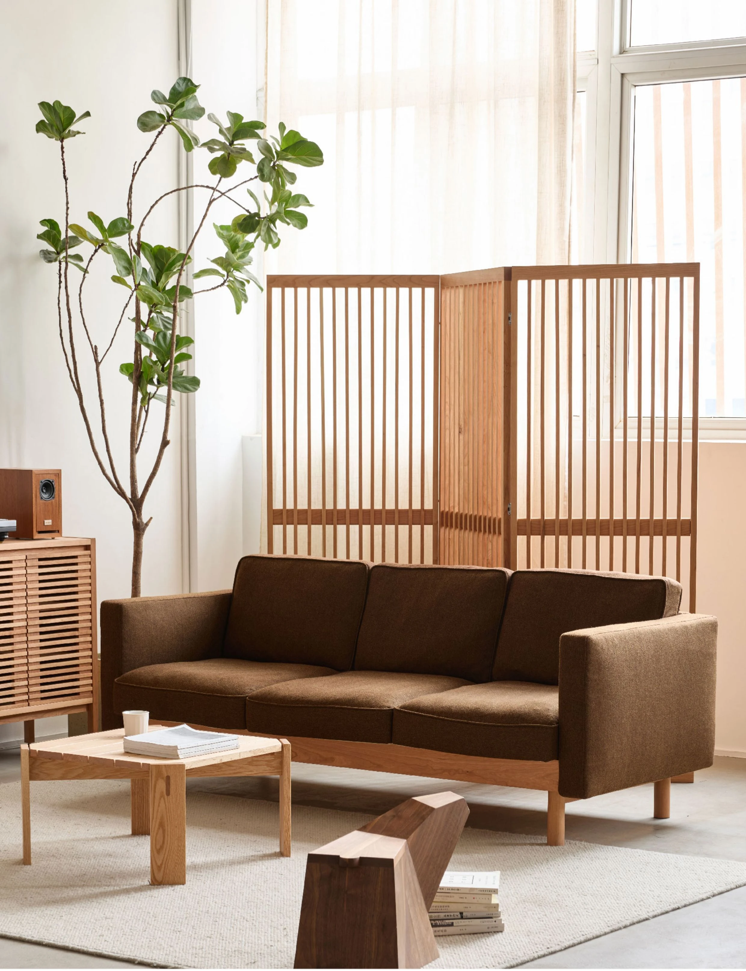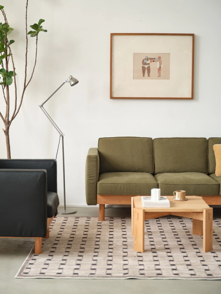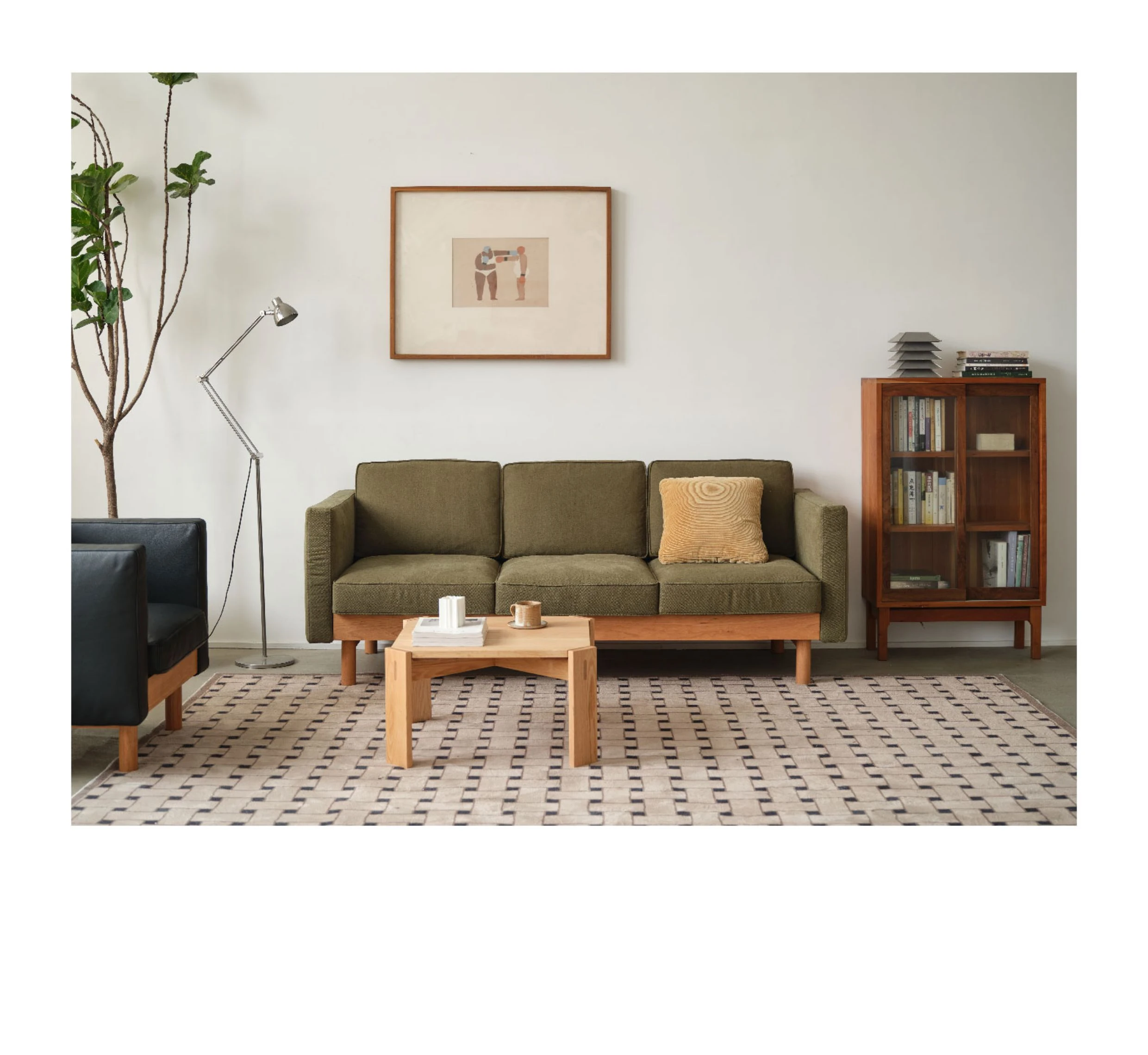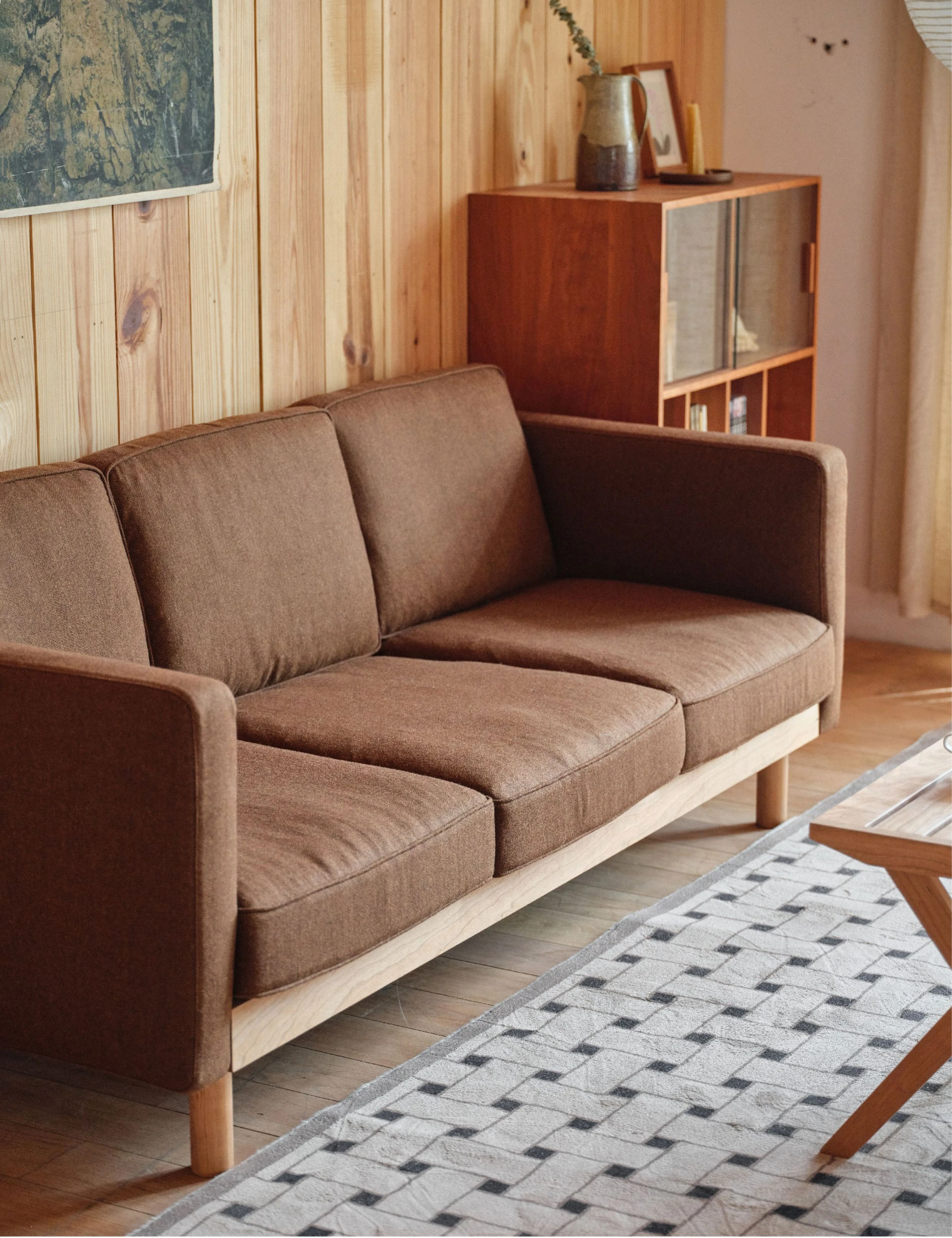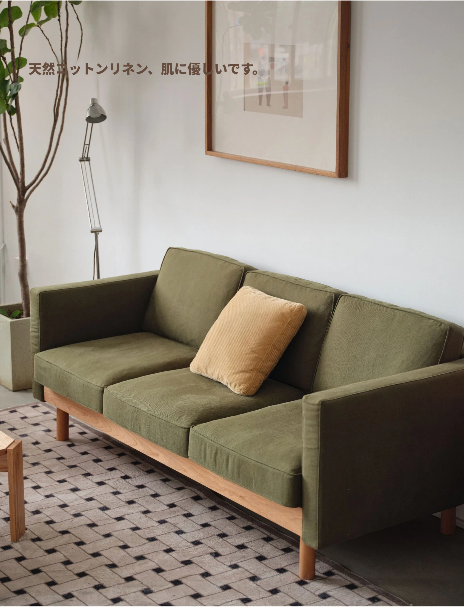 MUMO木墨 1950年代スタイルソファー 羊毛ファブリック使用 一人掛け・二人掛け・三人掛け対応 寝室やリビングに最適な天然木製ソファーで、落ち着いた雰囲気を演出します!