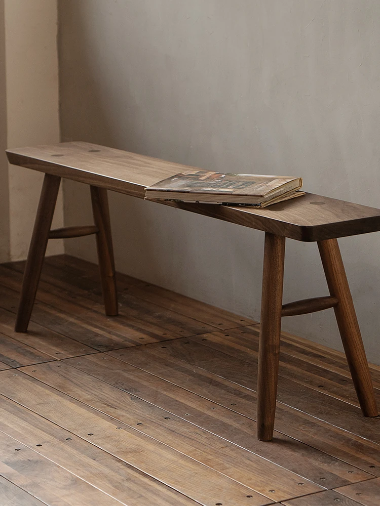MUMO木墨 新夏克スタイル 丸脚スツール 北欧風天然木製 ロングベンチ 玄関用シューズベンチ 和風ナチュラルデザインでおしゃれな靴脱ぎ場を演出!