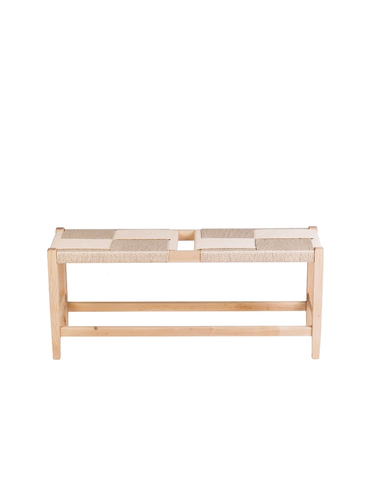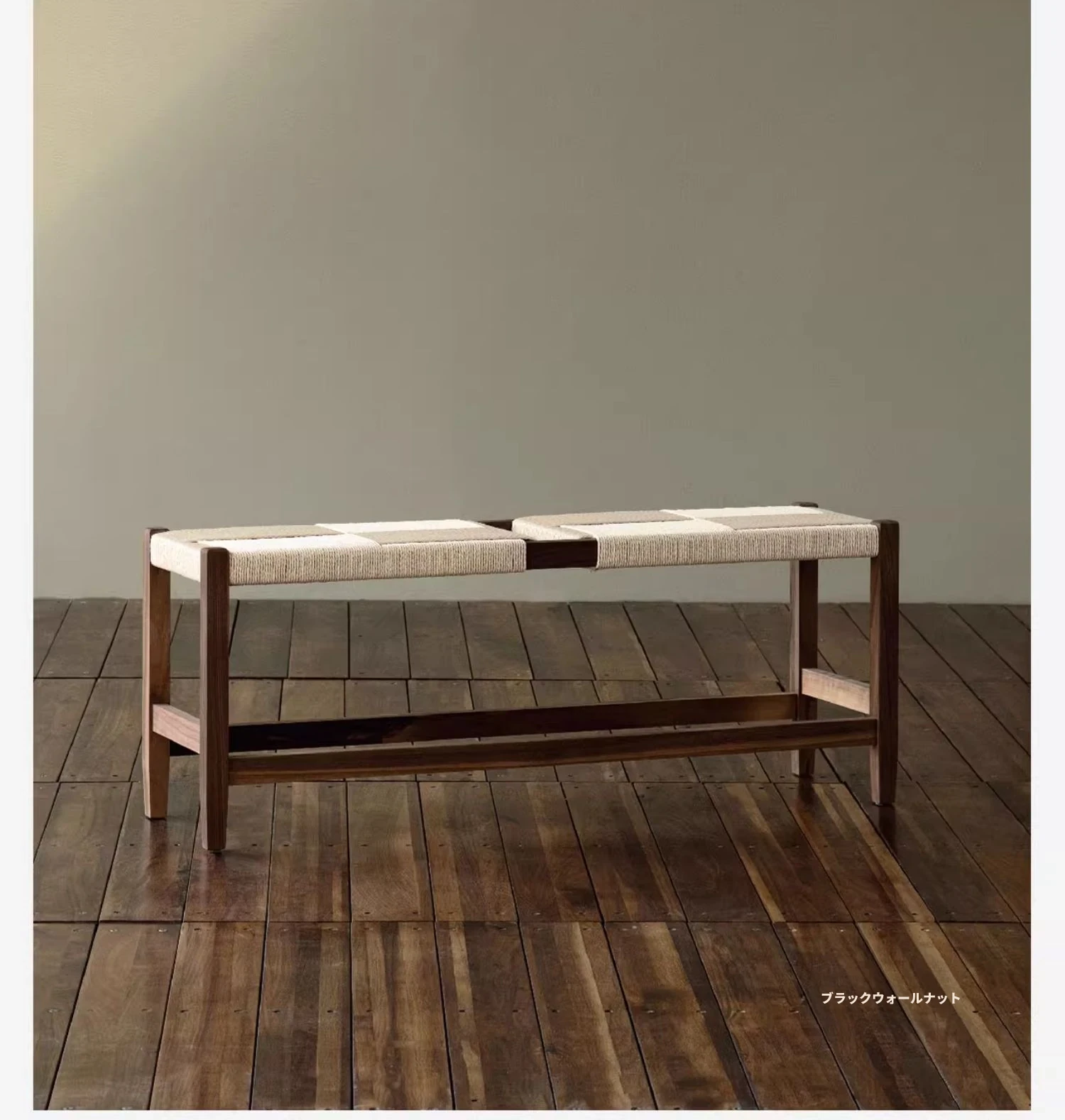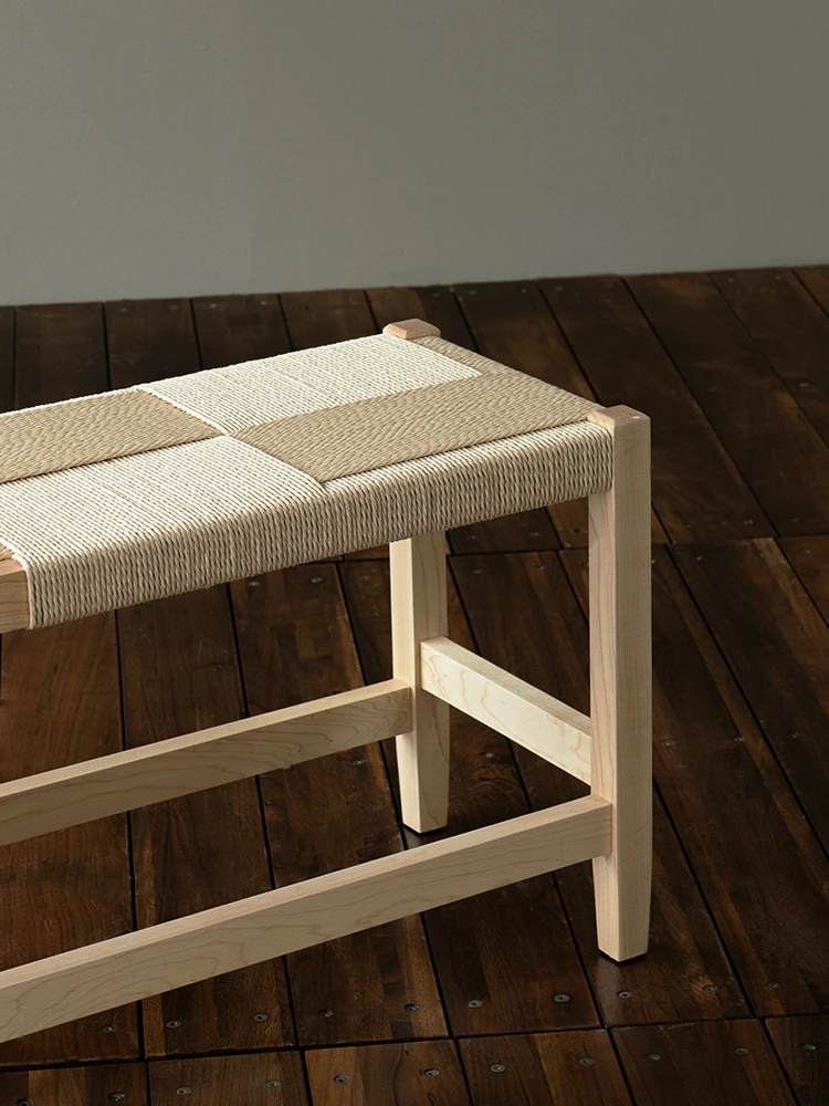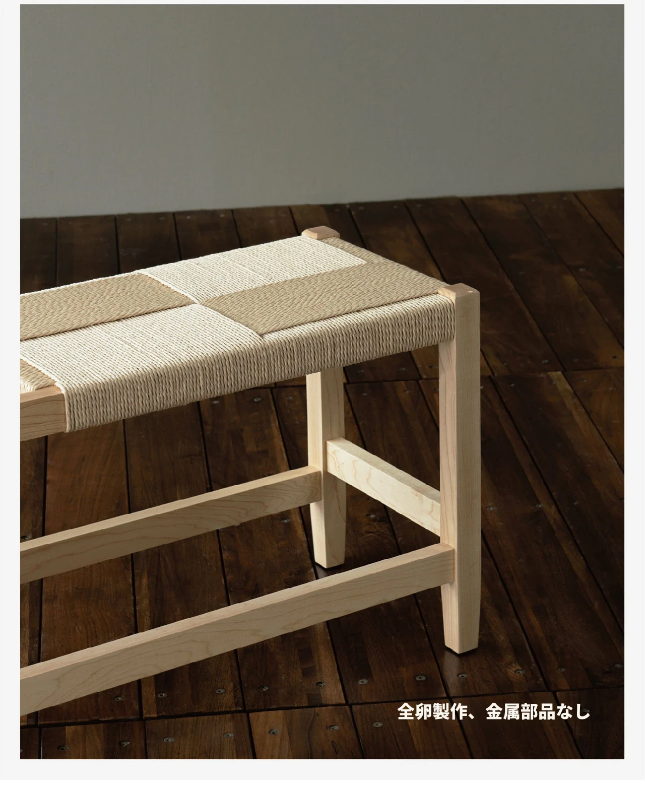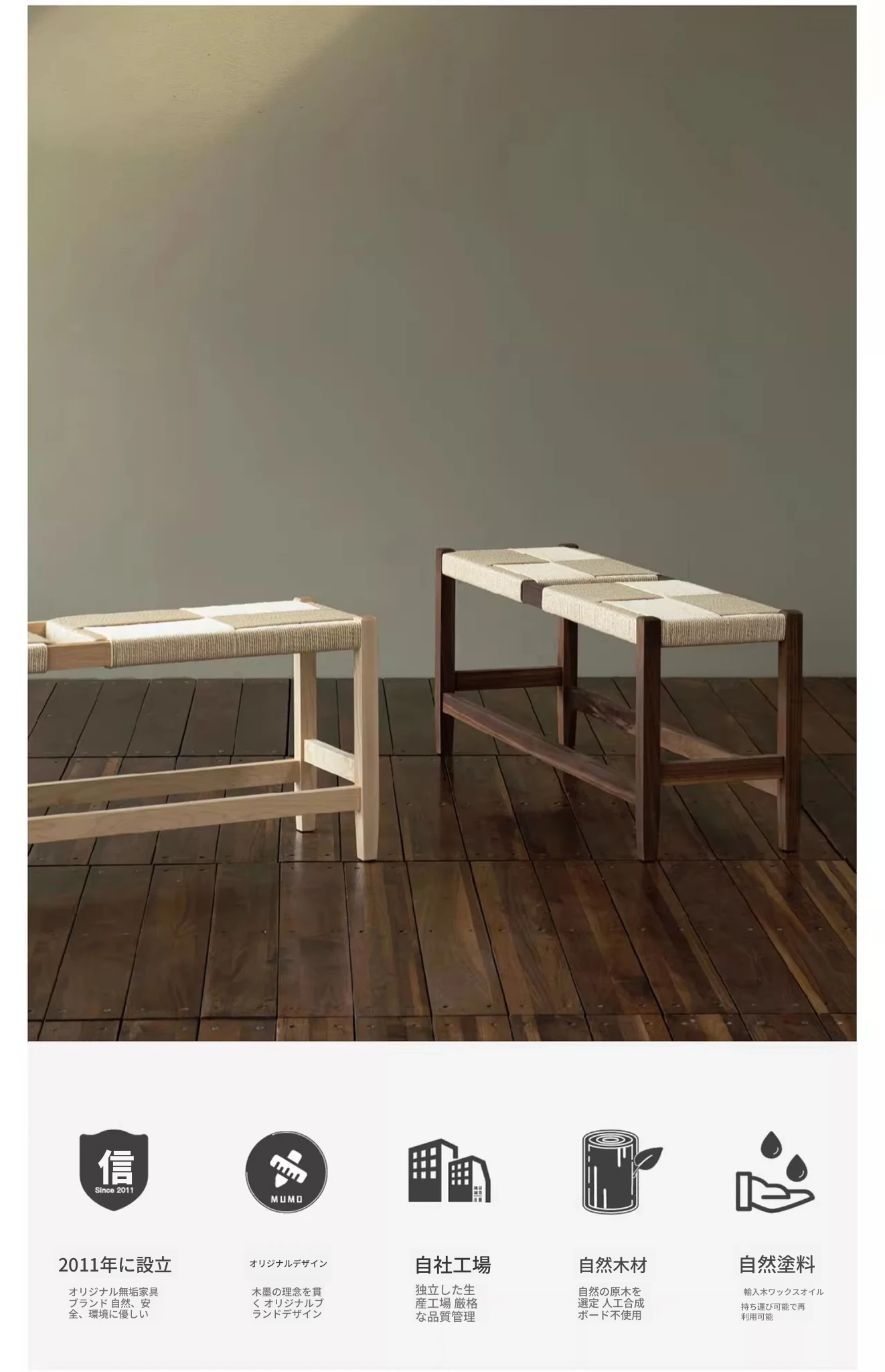 MUMO Wooden Woven Long Bench - Minimalist Solid Wood Stool for Living Room, Tea Room, or Bedroom - Perfect for Changing Shoes at Home